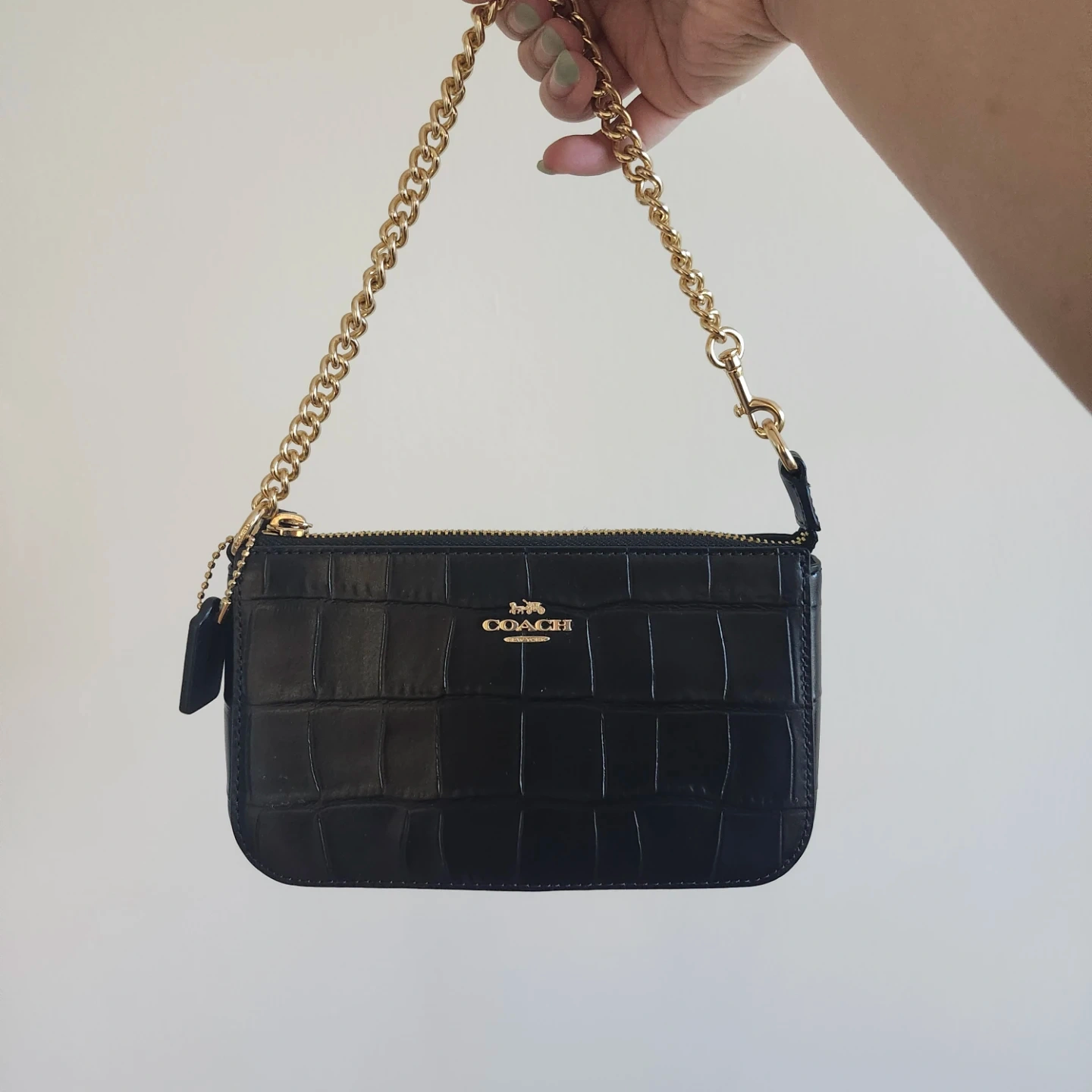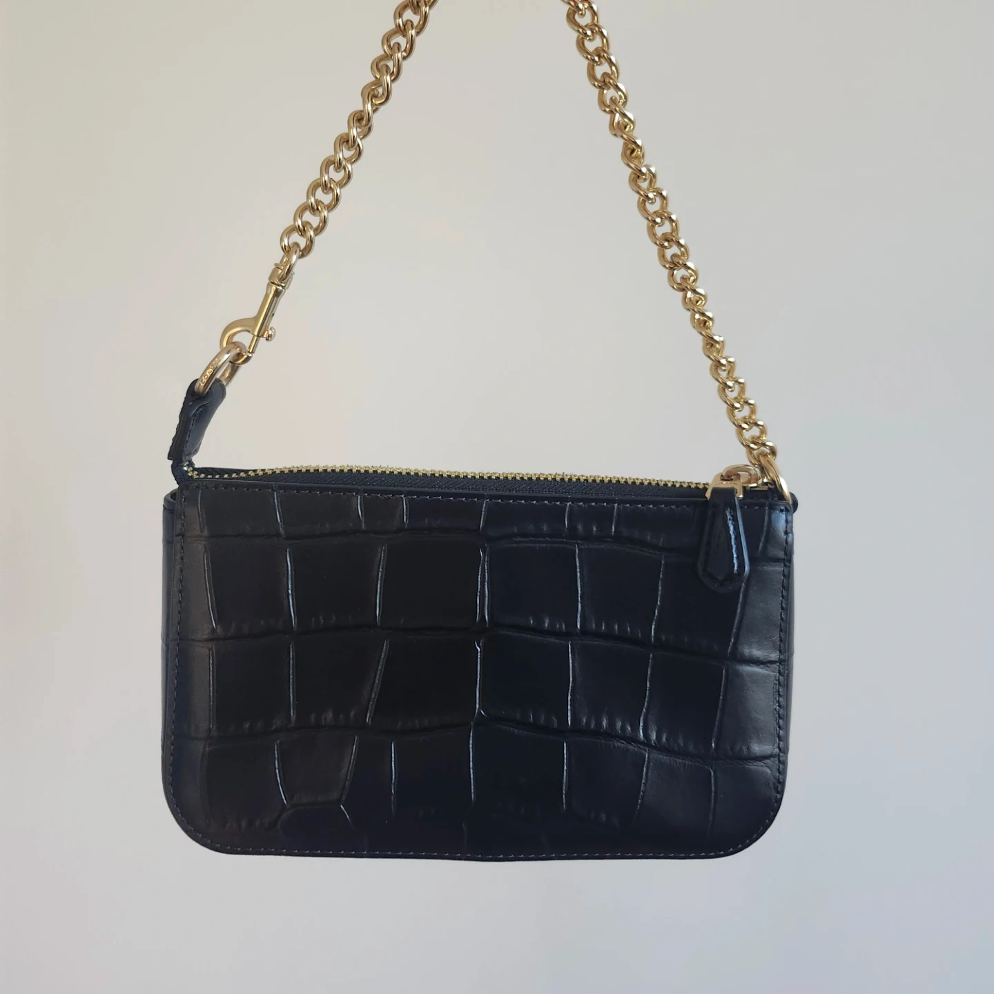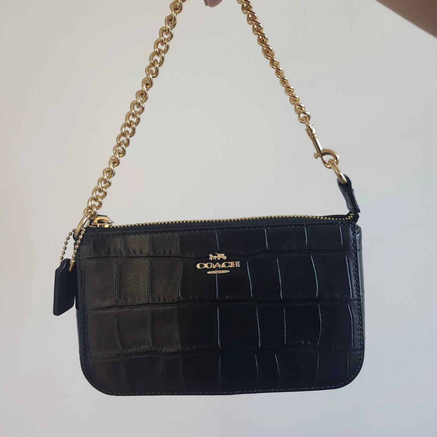 Selling a cute Coach chain bag! It's black with a croc embossed leather and gold chain. Perfect for a night out or just running errands!