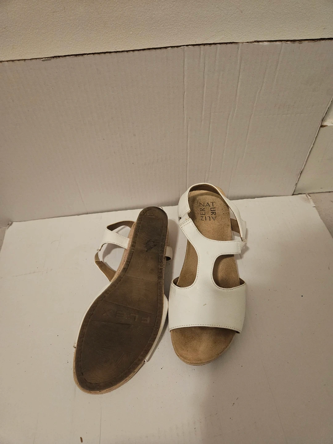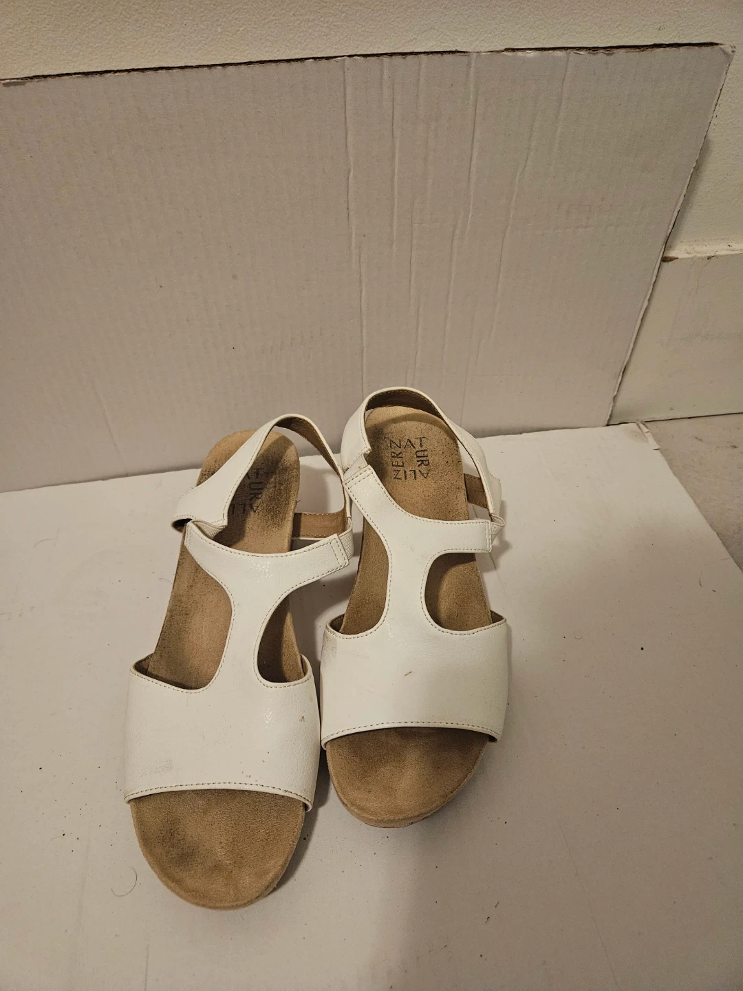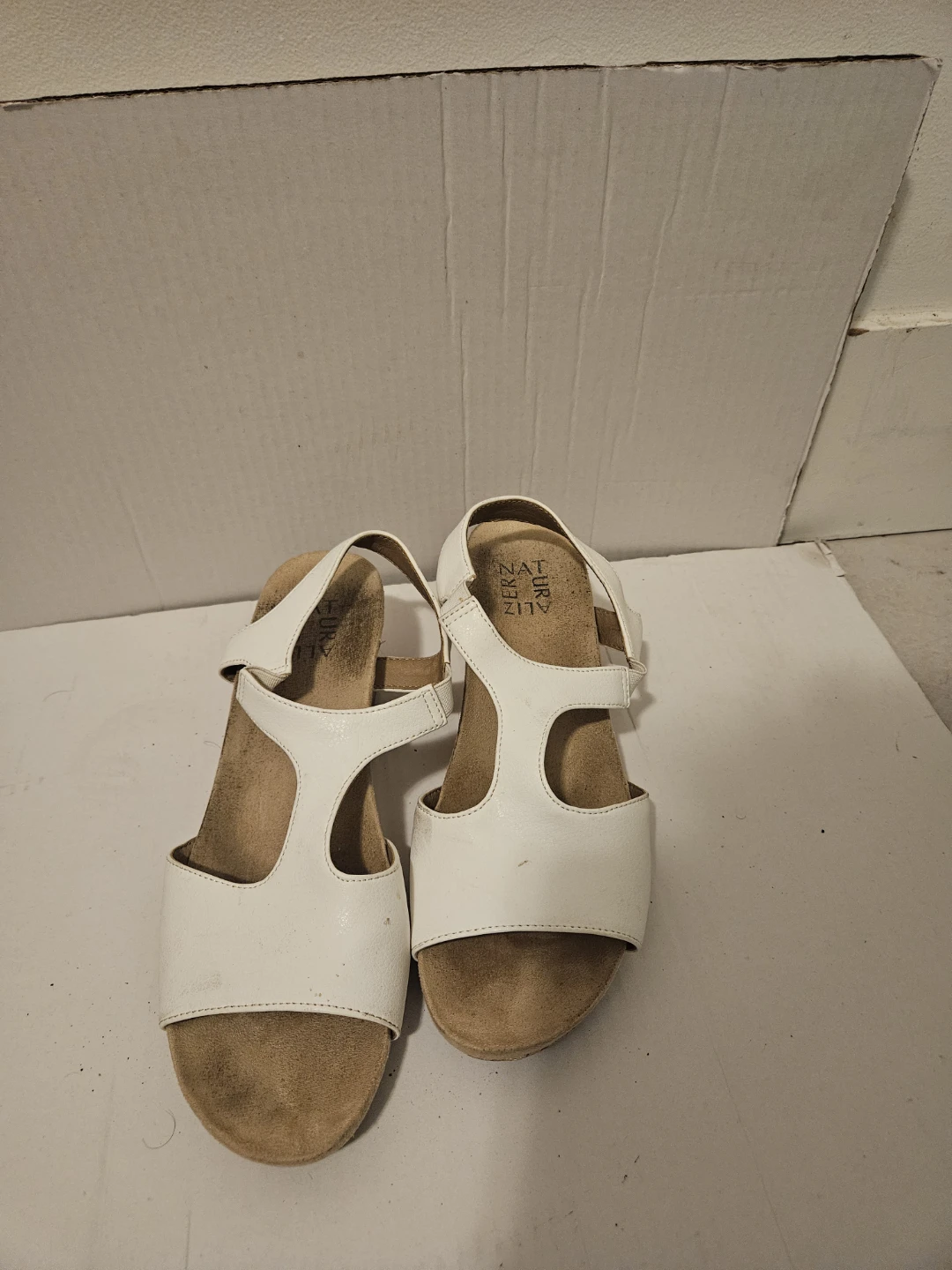 Naturalizer White Wedge Sandals Size 7.5 US