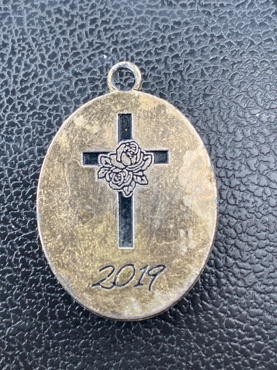 1 / 41 / 4Buy & SellReligious Pendant with CrossReligious Pendant with CrossFreeSelling a religious pendant featuring an image of a saint surrounded by roses on one side and a cross with a rose design and the year 2019on the other. It's a unique piece!WHERE TO MEETCheck LocationView MapSELLERverifieddiamondCorso Italia97291 reviews1 chats·0 favorites·14 viewsSEND CHAT TO SELLERHi diamond! I’m interested in your listing.Hi diamond! I’m interested in your listing.Get the Karrot app to chatSign In to chat