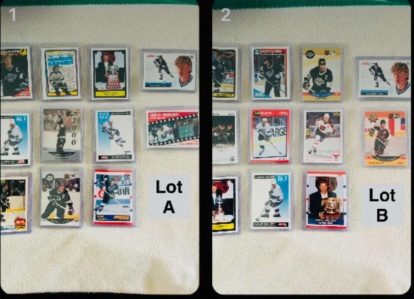Near mint condition (zoom in on pictures). LOT of 11 Wayne Gretzky Trading Cards UNGRADED. Comes with double protective sleeves (soft sleeve inside a hard sleeve) There are no duplicate cards in a LOT. Each LOT is $25 CAD (FIRM). There are 2 lots available. TAKE AS IS (NO trade/exchange or selling separately). Smoke Free Home.