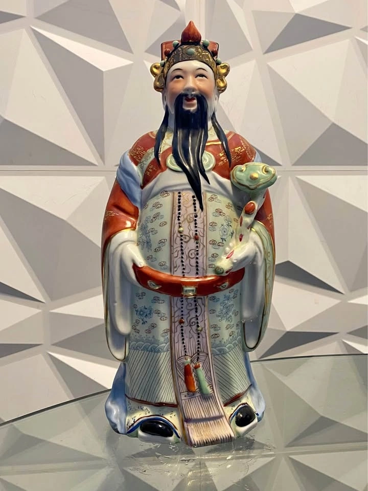 A large porcelain figurine of one of the Chinese Sanxing Deities. See other listings for the 2 other’s of the trio of Gods known as Fu Lu Shou.