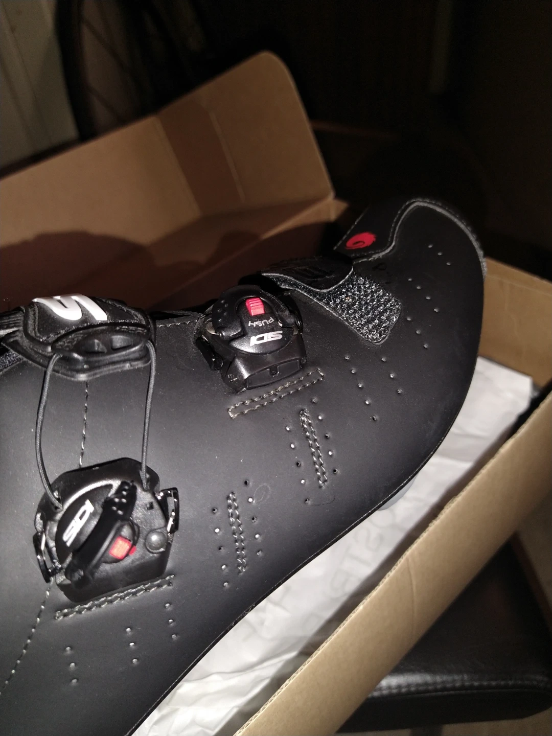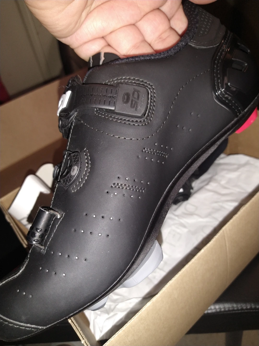 Selling a pair of Sidi Ergo 5 cycling shoes in matte black. They are in excellent condition and come with the original box. The size is US 9.2 / EUR 43.5.