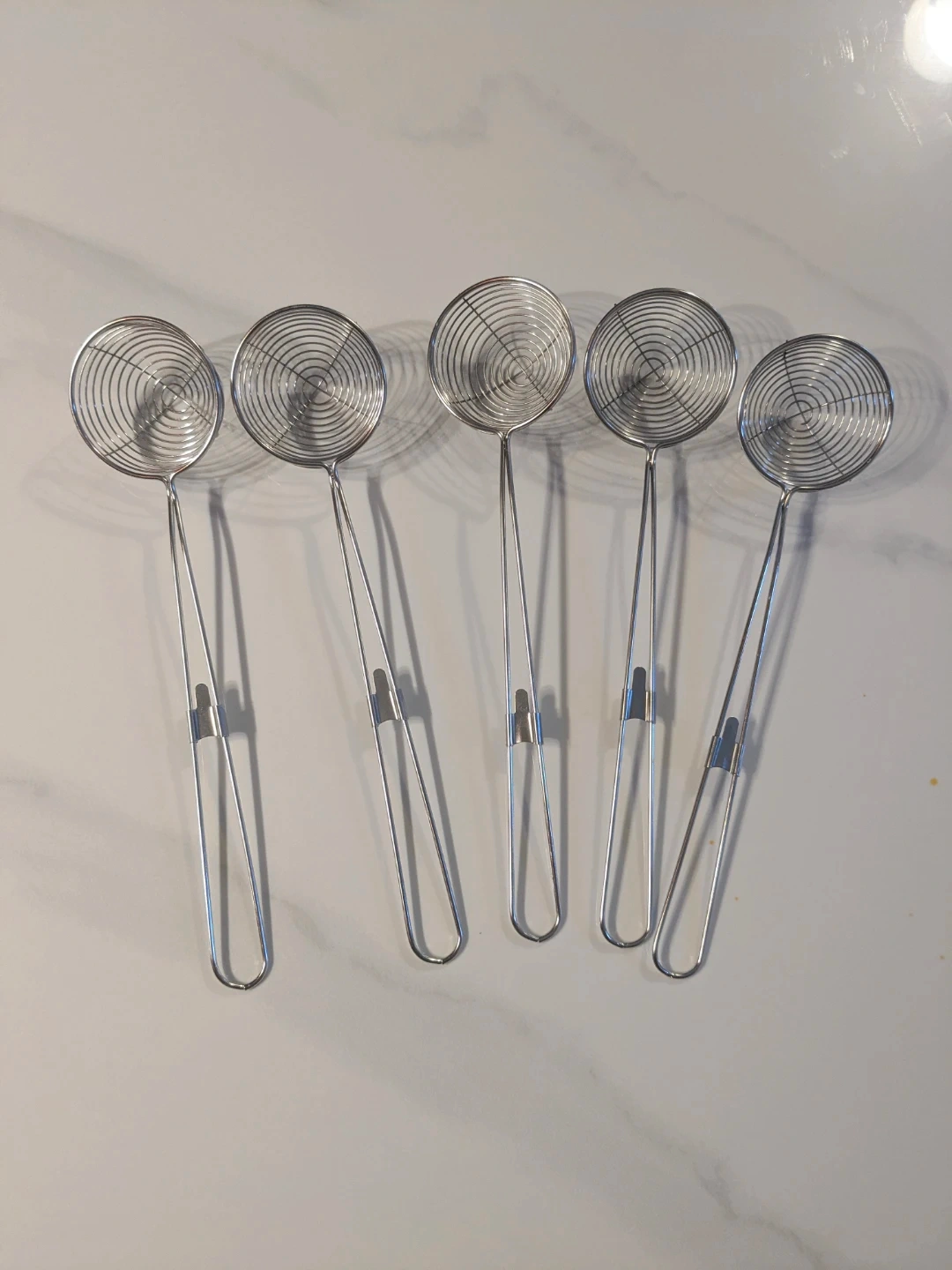 5 small stainless steel hot pot strainers (used once)