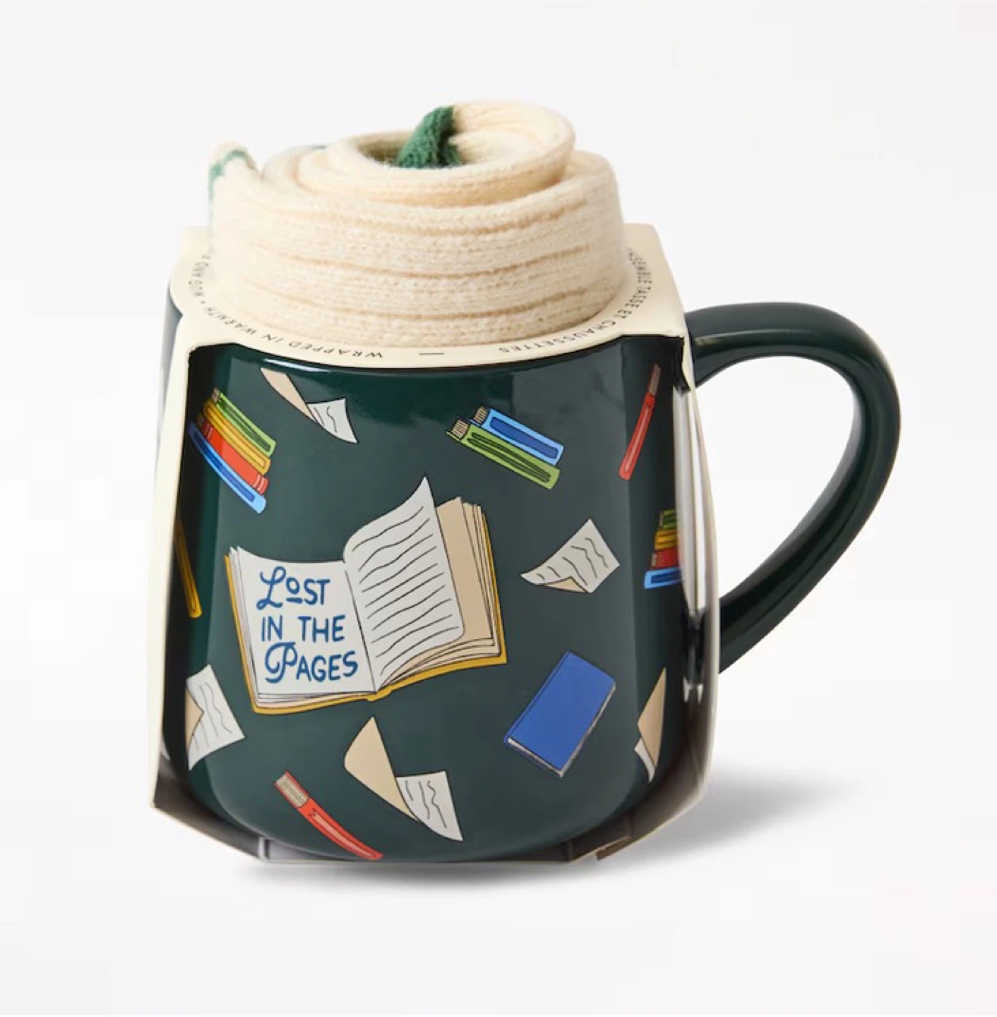 Brand new in packaging Indigo “Lost in the pages” mug and sock gift set