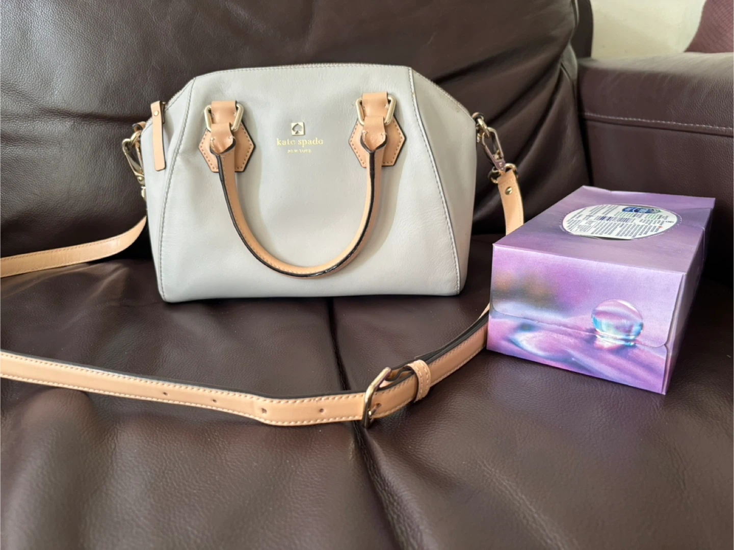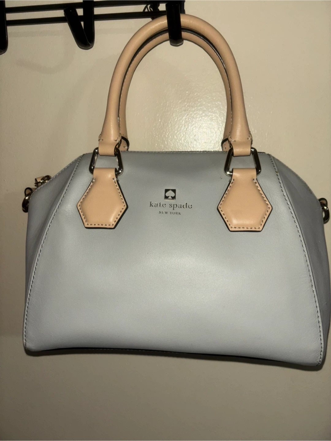 Selling a Kate Spade satchel in a lovely grey colour! It's a stylish leather handbag, perfect for everyday use. The bag has a detachable shoulder strap and is in great condition. It's a classic piece that will complement any outfit!