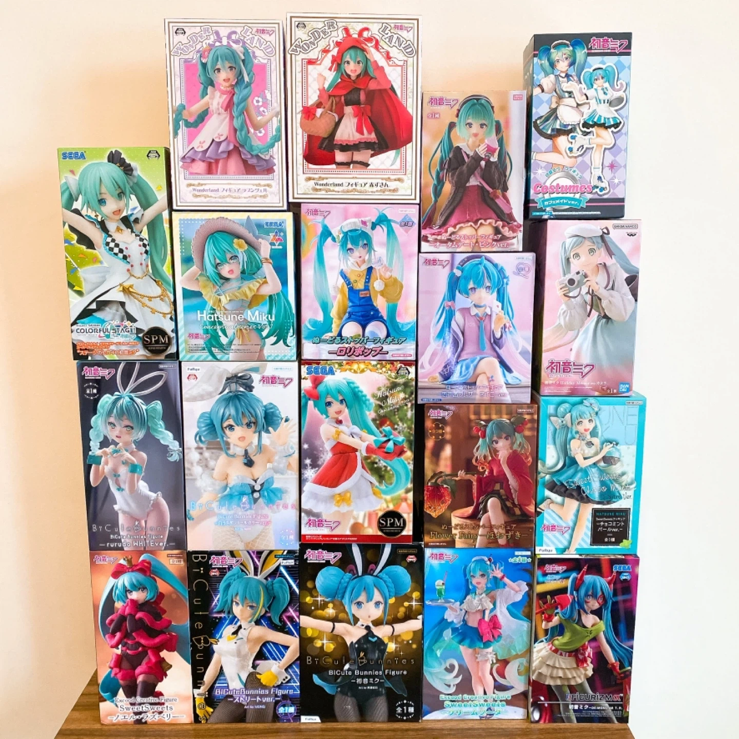 Selling a collection of Hatsune Miku figures! There are a variety of figures, including Wonderland, Colorful Stage, BiCute Bunnies, and more! All are in their original boxes. Great for any Miku fan!
