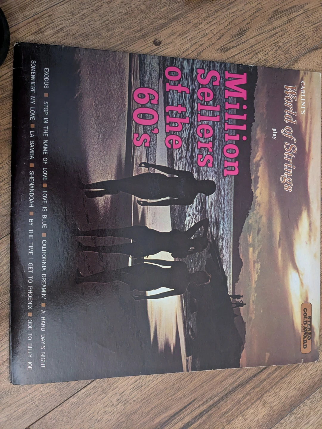 Selling a vinyl record titled 'Million Sellers of the 60's' by Carlini's World of Strings. It's a Stereo Gold Award Series record featuring classics like Exodus, Stop In The Name Of Love, and California Dreamin'. A great addition to any vinyl collection!