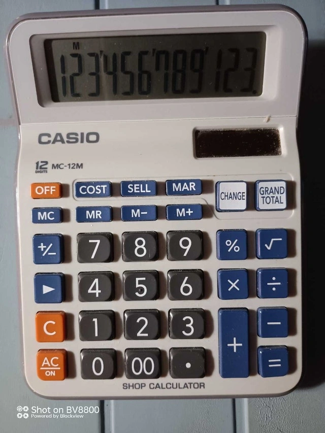 I'm selling a Casio MC-12M 12-digit calculator, perfect for shop use! This calculator is in used, but good condition. It has a solar cell and uses 1xAA battery. Key Features: * 12-Digit Display * Grand Total Memory * Change Function * Cost, Sell, Margin Functions This calculator is ready to crunch numbers! Don't miss out on this handy tool for your business or personal needs. If you're seeing this ad, it's still available!