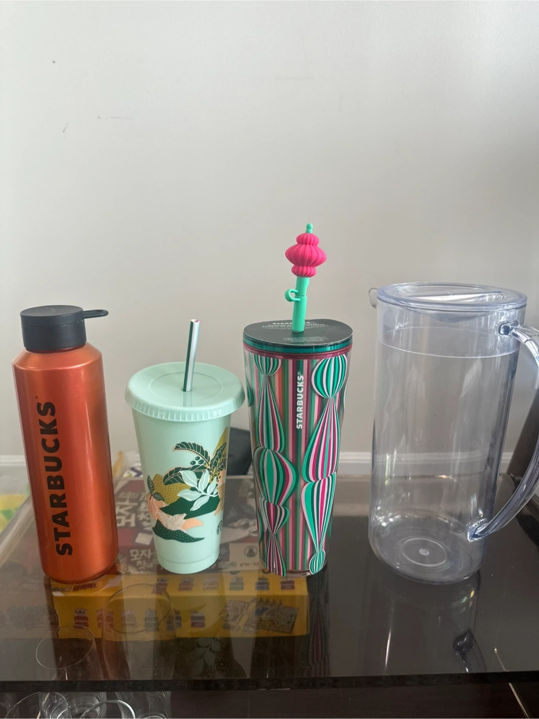 Selling a few Starbucks tumblers and a water bottle. They're in great shape and ready for a new owner! Perfect for staying hydrated in style.