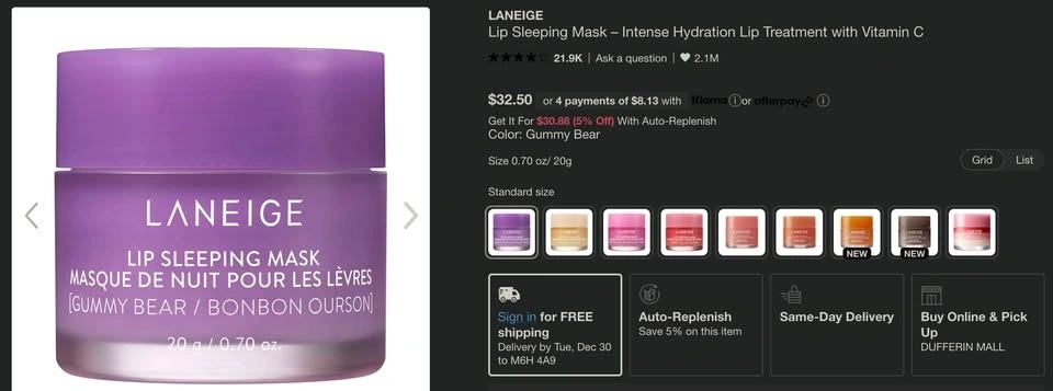 LANEIGE Lip Sleeping Mask (Taro Bubble Tea)