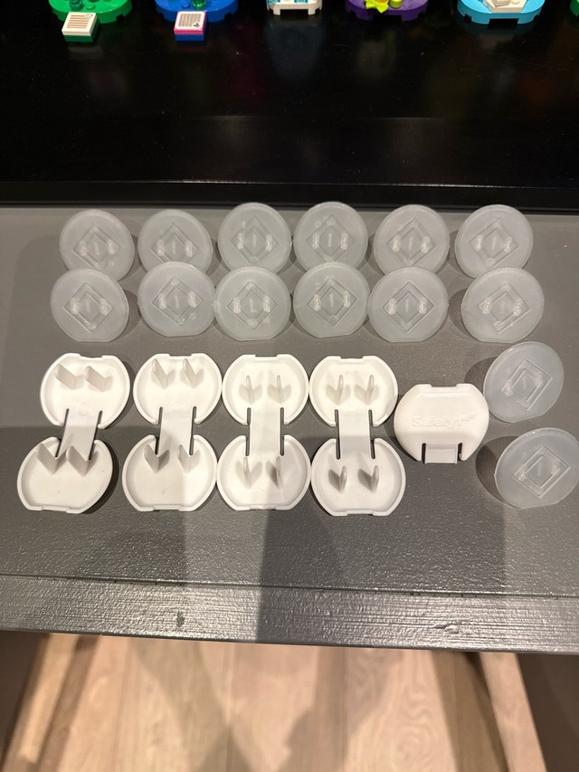 Keep your little ones safe with this set of Safety 1st outlet plugs. This is a mixed lot of 23 plugs perfect for childproofing your home. It's like having a tiny security detail for each outlet! If the ad's up, they're still available!