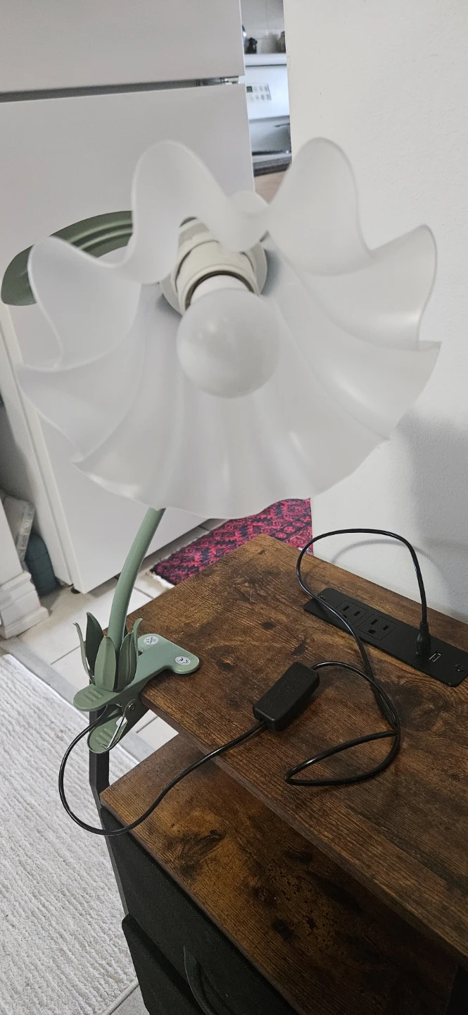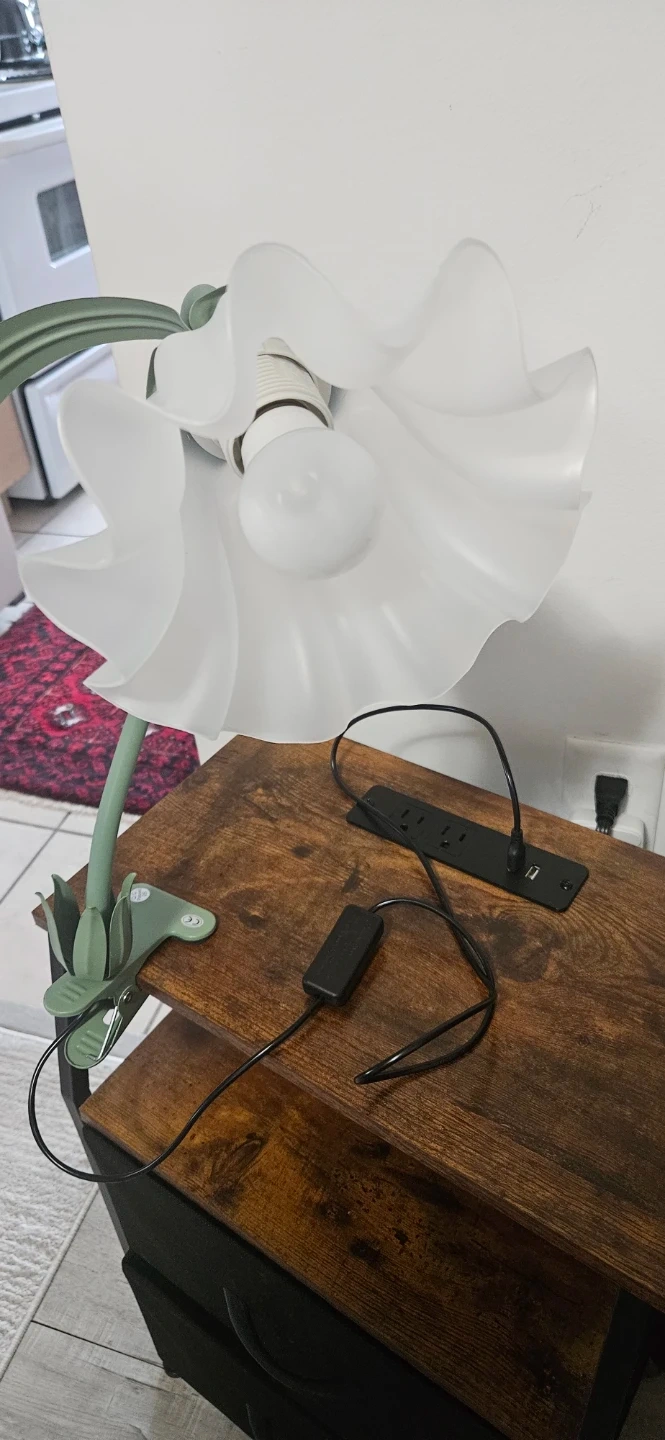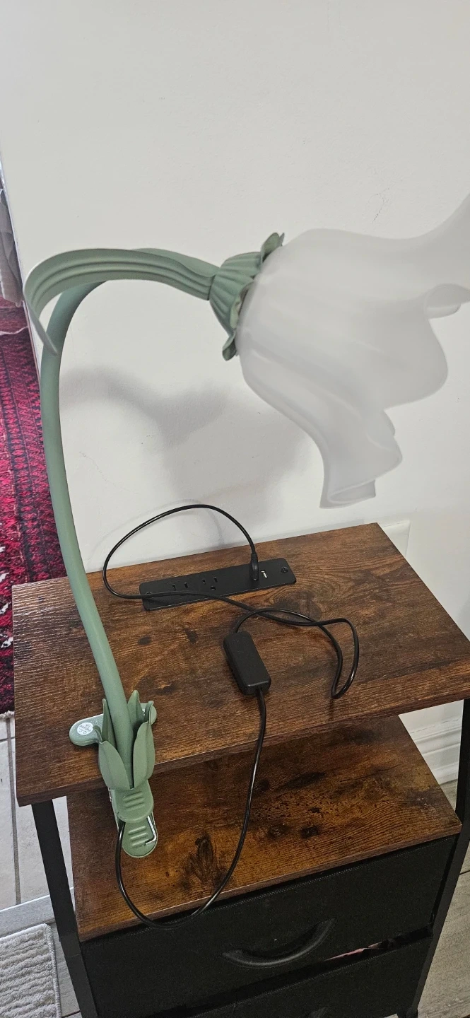 Selling a brand new FlexiBloom table lamp, still in its original box! This unique lamp features a floral design and flexible stem, perfect for adding a touch of whimsy to any room. It's a great decorative piece and provides a soft, ambient light
