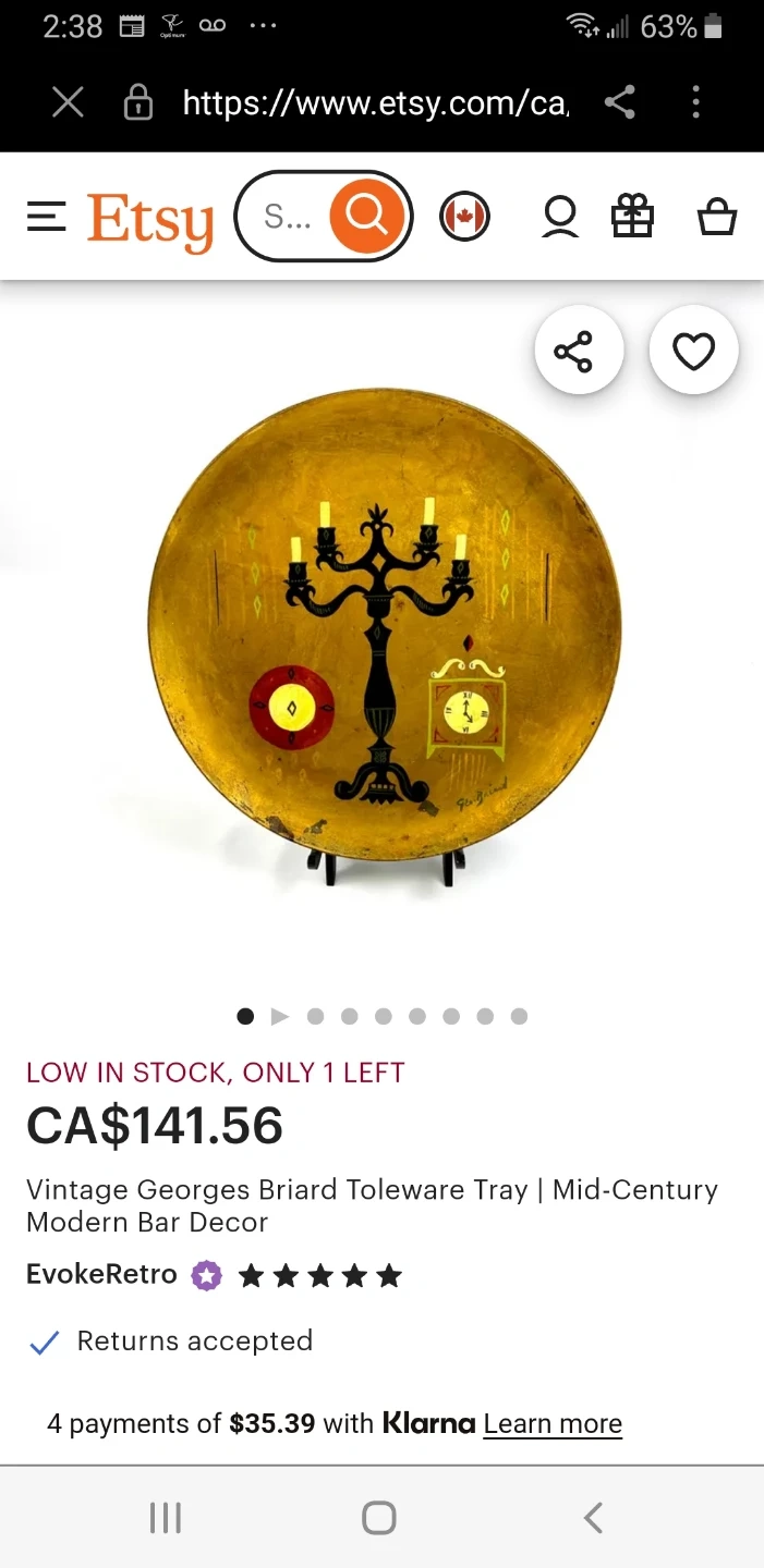 This is a vintage Georges Briard metal tray from the 1950's.