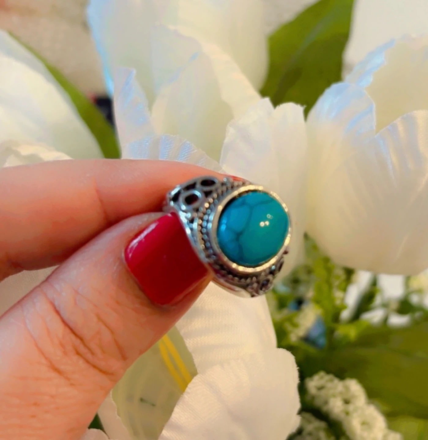 1 / 41 / 4Buy & SellBeautiful Turquoise Stone Ring, Size 6Beautiful Turquoise Stone Ring, Size 6$10A lovely turquoise stone ring! It has a beautiful silver-tone band with a detailed design.ConditionNewWHERE TO MEETCheck LocationView MapSELLEROsashaLower Lonsdale25224 reviews0 chats·1 favorites·24 viewsSEND CHAT TO SELLERHi Osasha! I’m interested in your listing.Hi Osasha! I’m interested in your listing.Get the Karrot app to chatSign In to chat