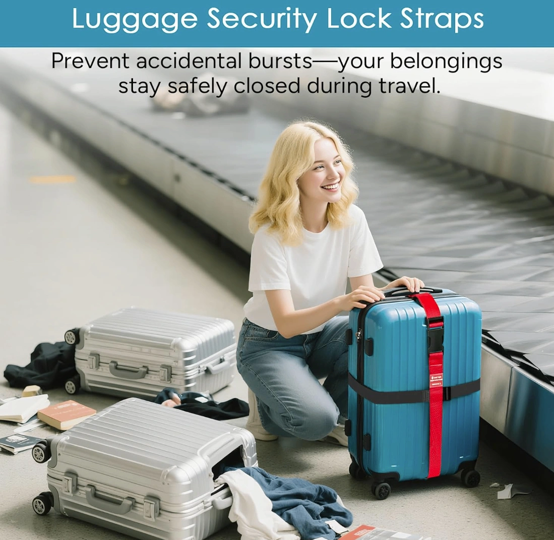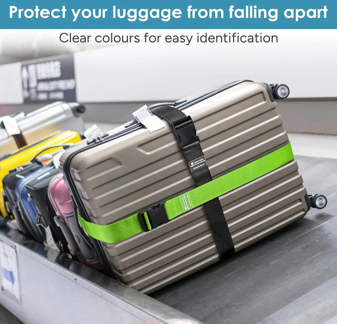 Great for: securing zippers, compressing soft luggage, identifying your suitcase.
