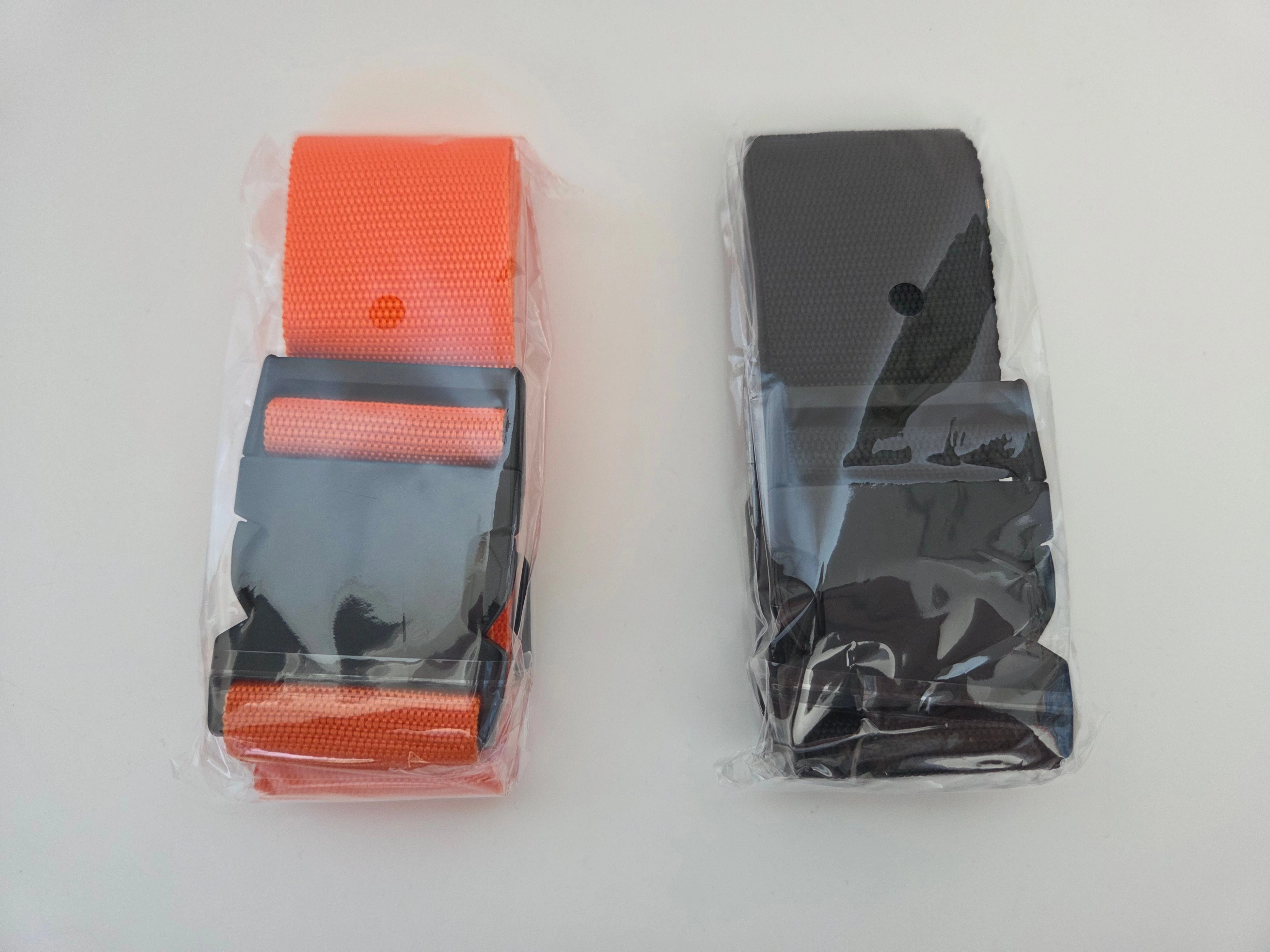 Fresh set of 2 adjustable luggage straps – one black, one orange. Brand new in sealed bags. Perfect to keep a suitcase from popping open and to spot your bag on the carousel in seconds.