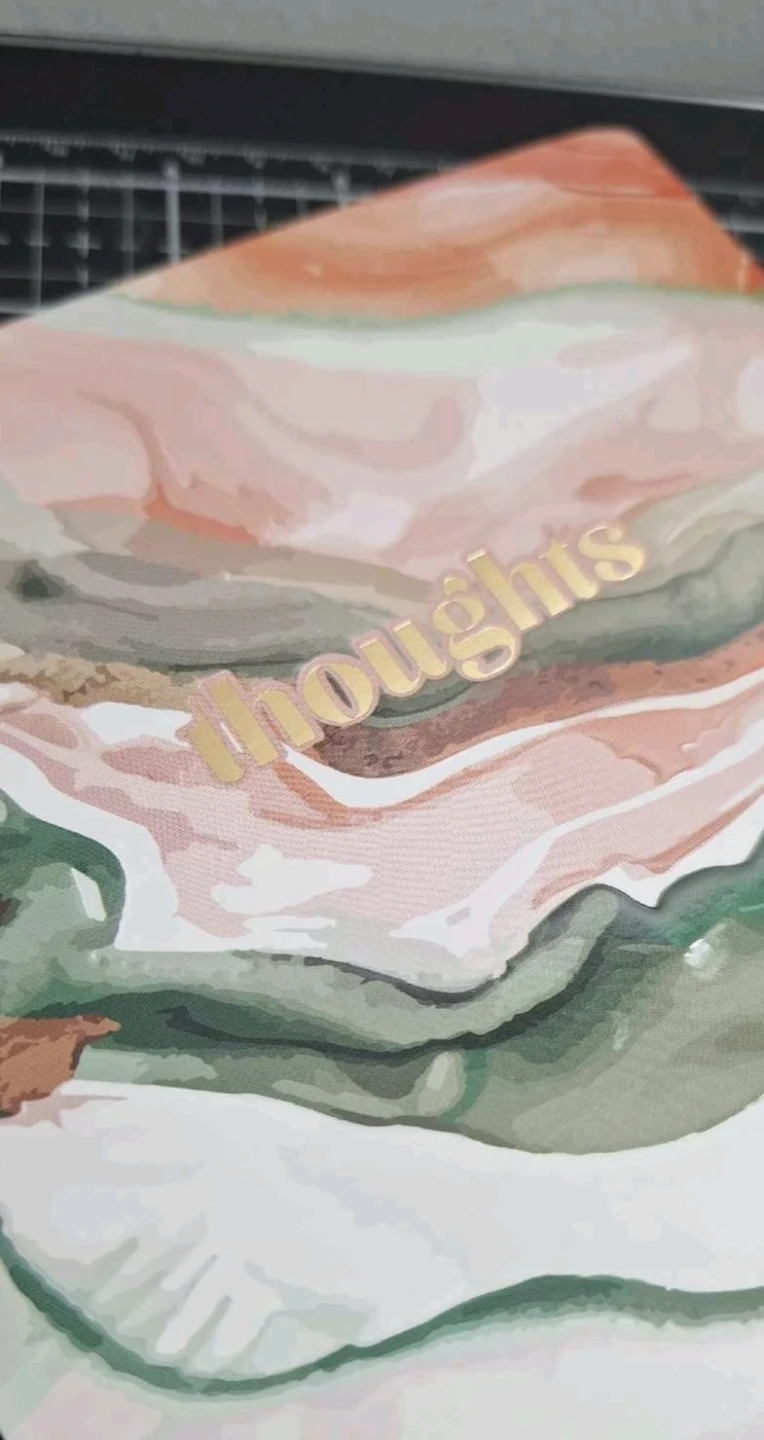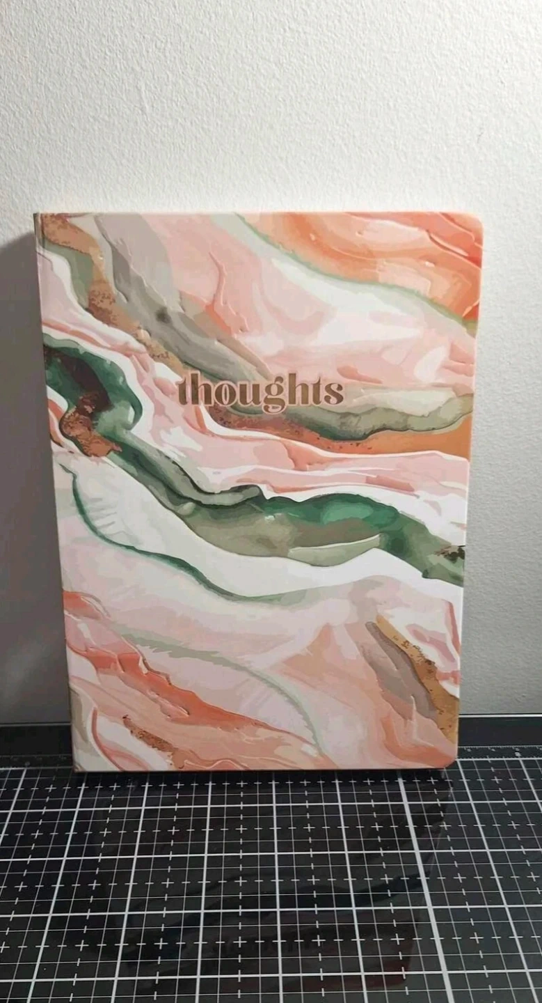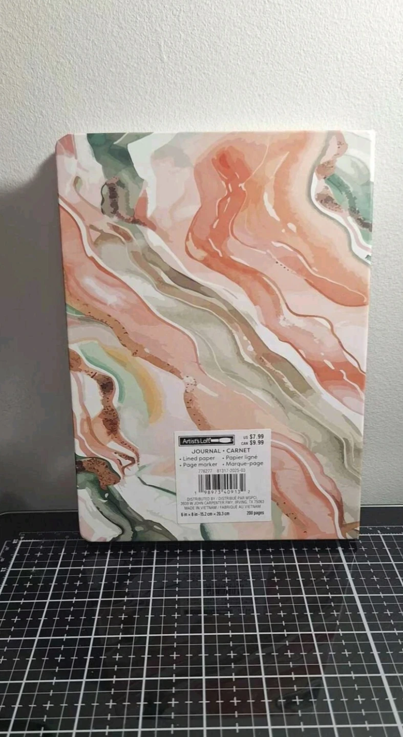 It features a beautiful, swirling design in shades of peach, green, and cream