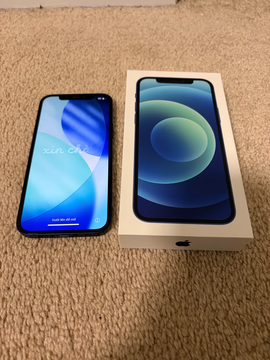 Selling an iPhone 12 in blue! It's in excellent condition and comes with the original box.