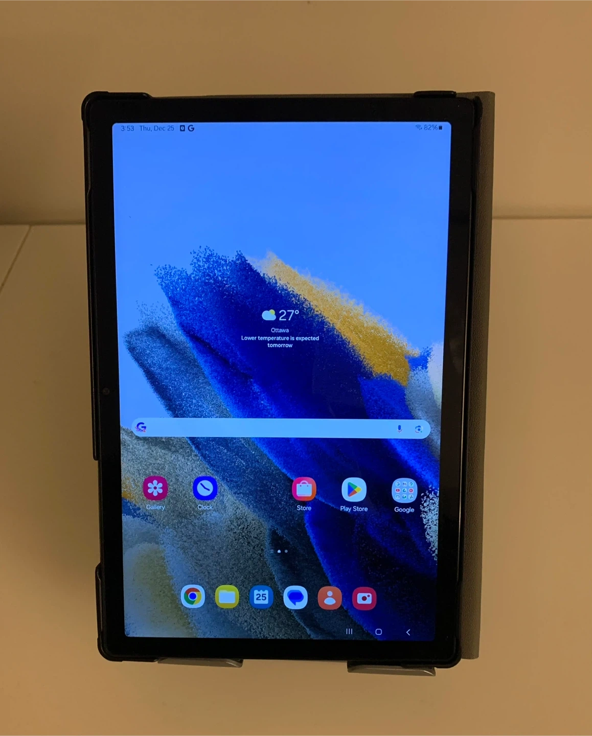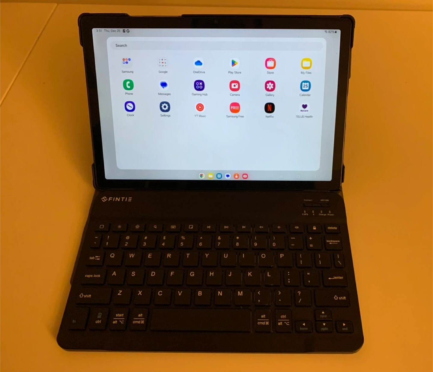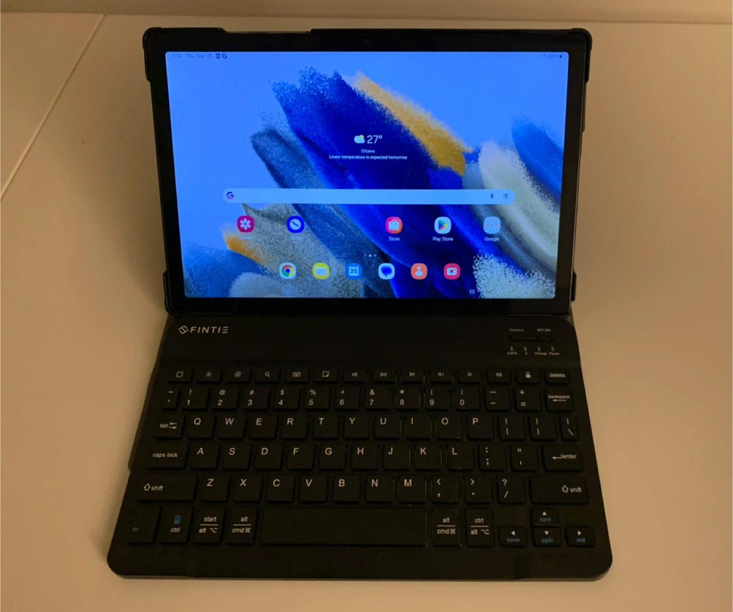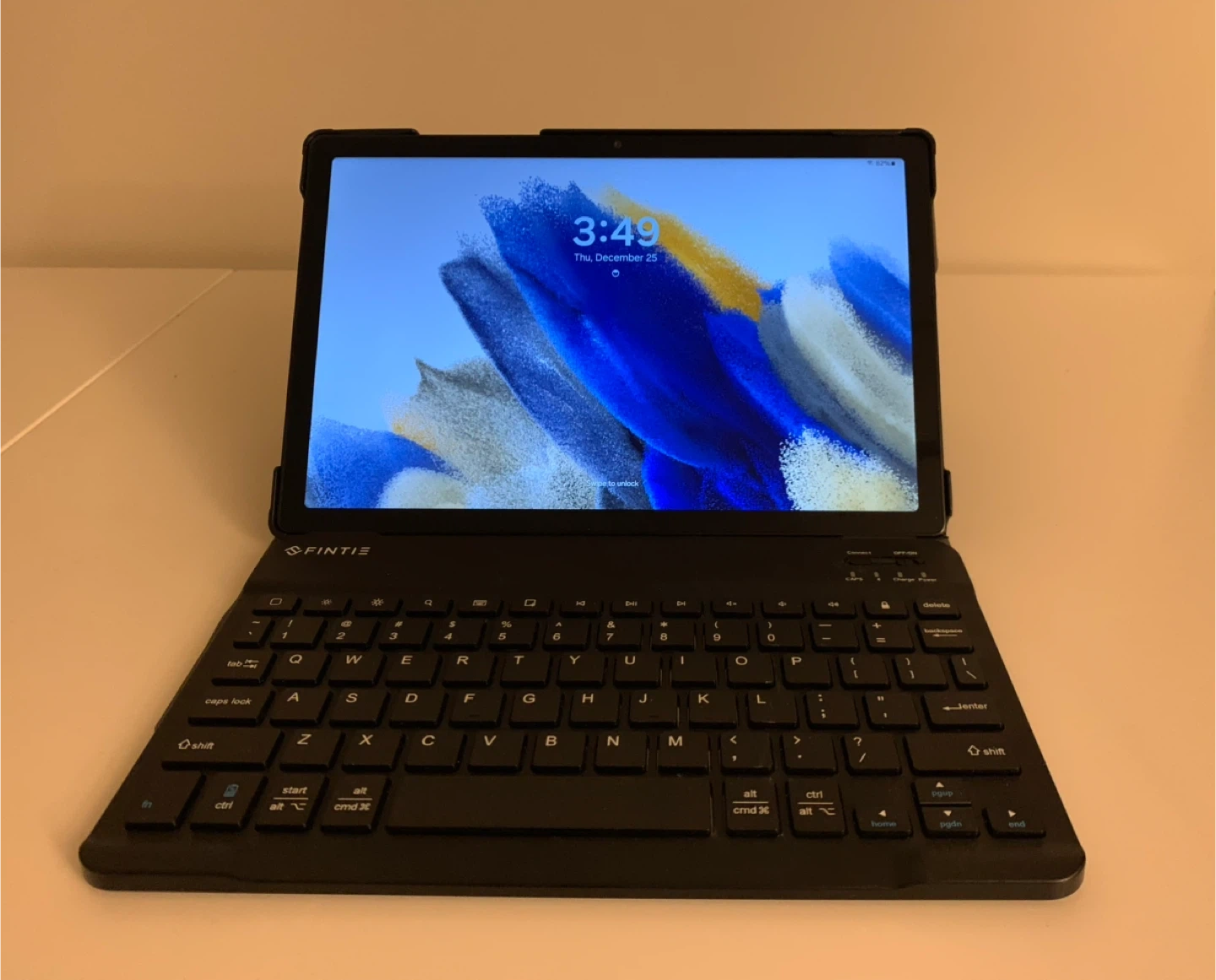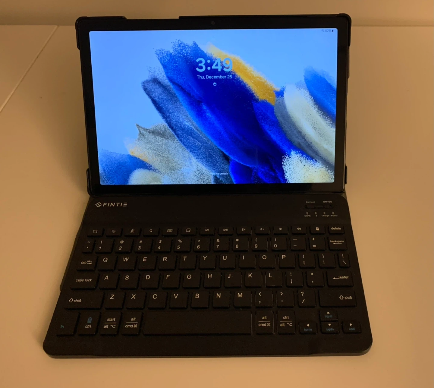 Selling a Samsung tablet paired with a Fintie keyboard case. It's in great condition and ready for a new user. The keyboard case makes it super convenient for typing and using it like a mini-laptop!