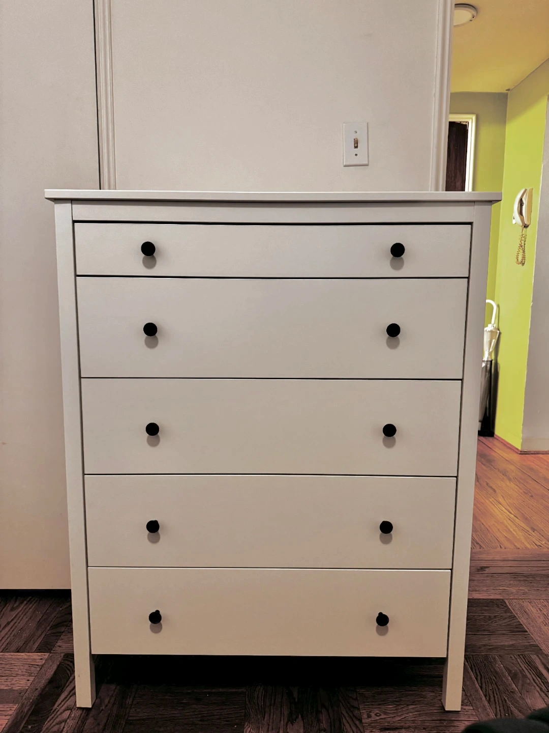 Selling a white IKEA Koppang 5-drawer chest! It's in great shape and ready for a new home. Perfect for adding storage to any room. Dimensions: 90 cm (35.5 inches) wide 114 cm (45 inches) tall 44 cm (17.5 inches) deep