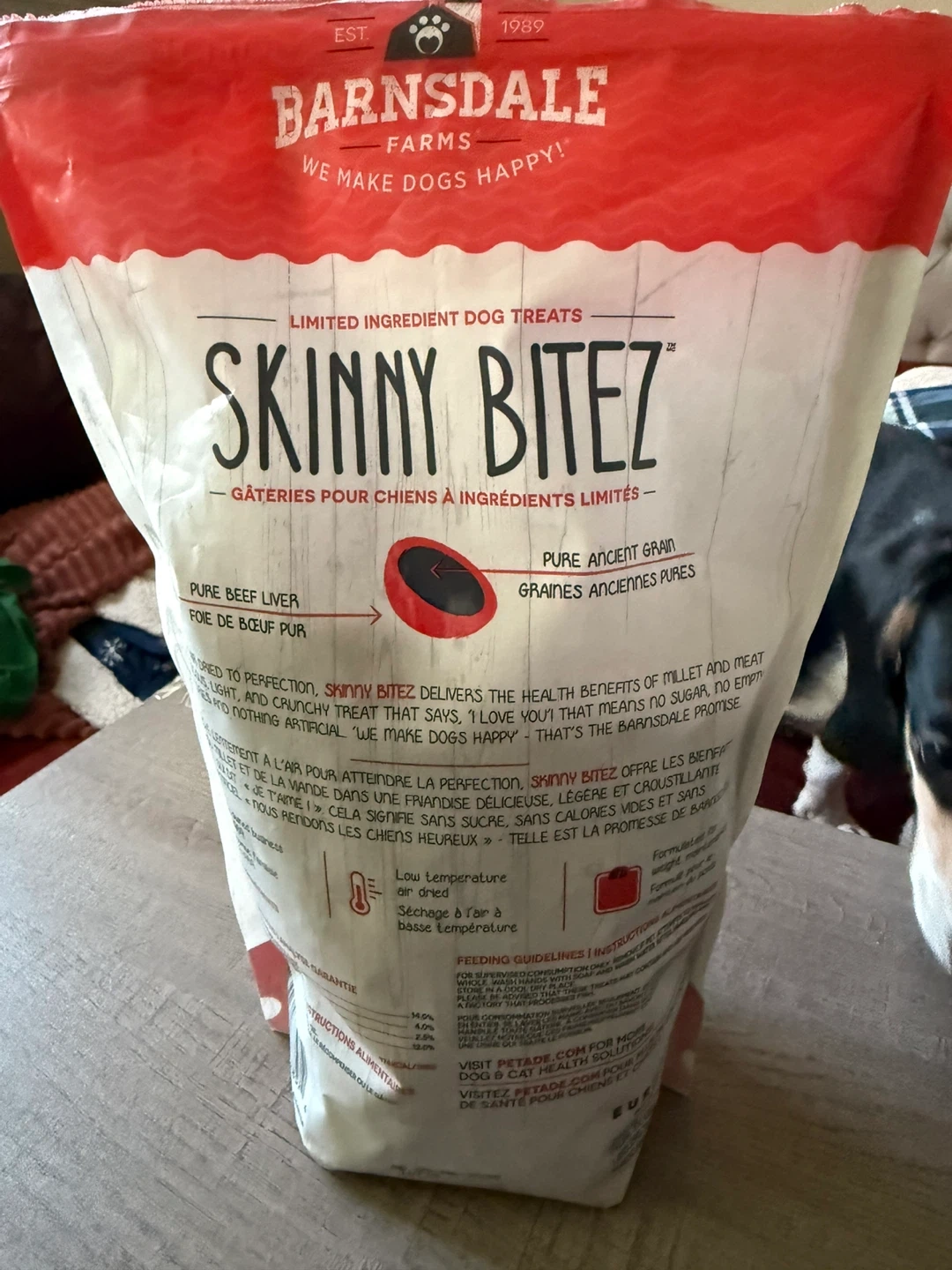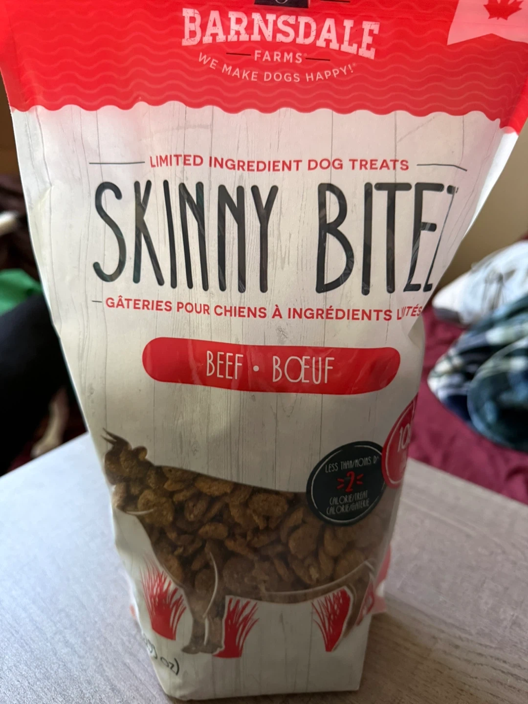 - Selling a bag of Barnsdale Farms Skinny Bitez dog treats in beef flavour.