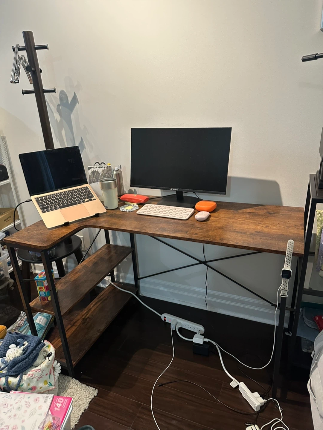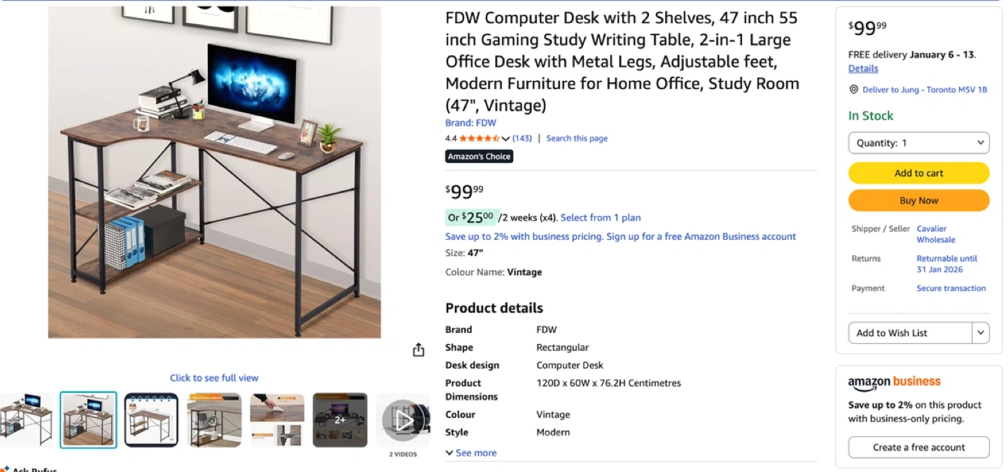 This FDW computer desk is perfect for your home office or study room! It features two shelves for extra storage and a vintage colour that will match any decor. The desk is made with metal legs and an adjustable feet. The dimensions are 120D x 60W x 76.2H Centimetres.