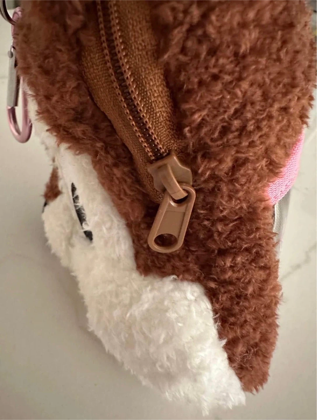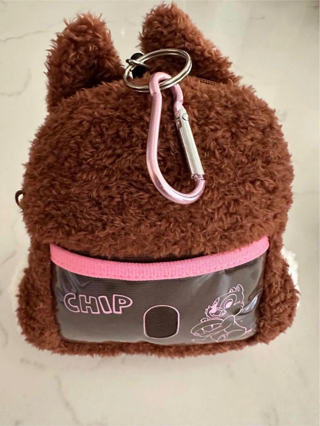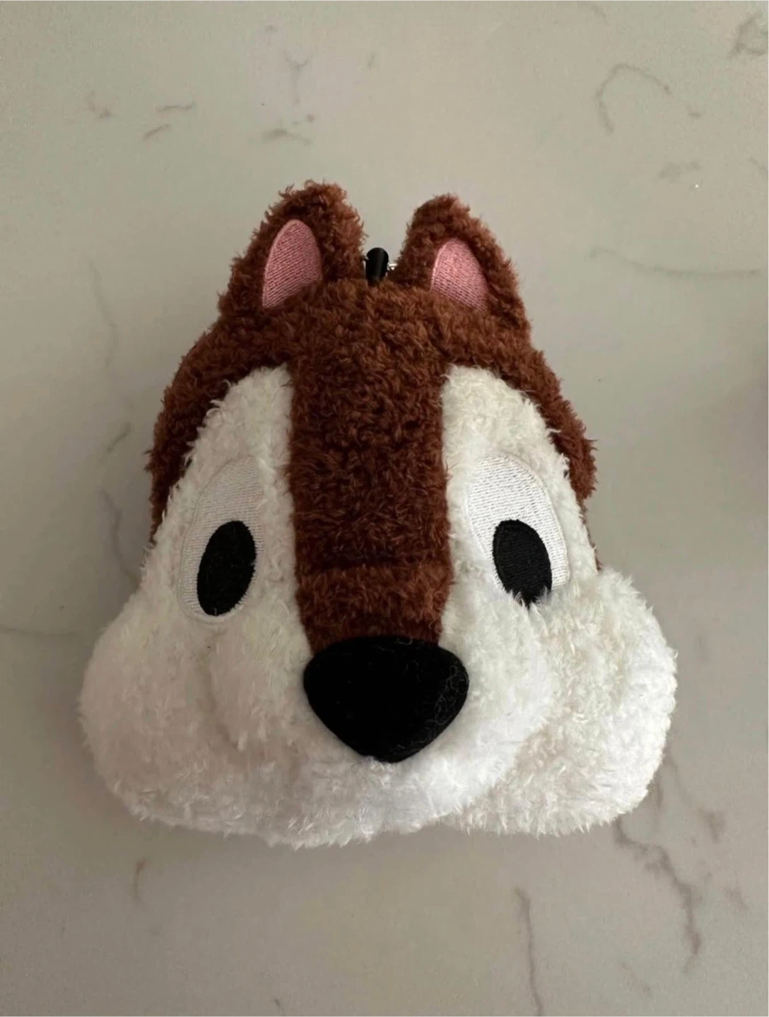 Super cute Chip 'n' Dale coin purse! It's made of plush material and has a zipper closure. Great for carrying your coins and small items.