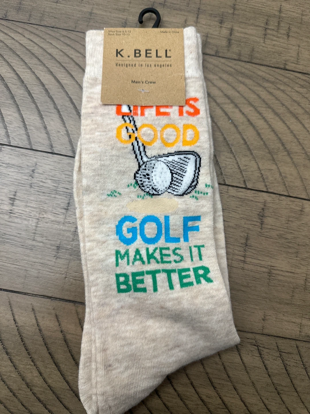Brand new K. Bell men's crew socks featuring a fun golf theme! These fit sizes 6-12 and are designed in Los Angeles. Perfect for the golf enthusiast in your life!