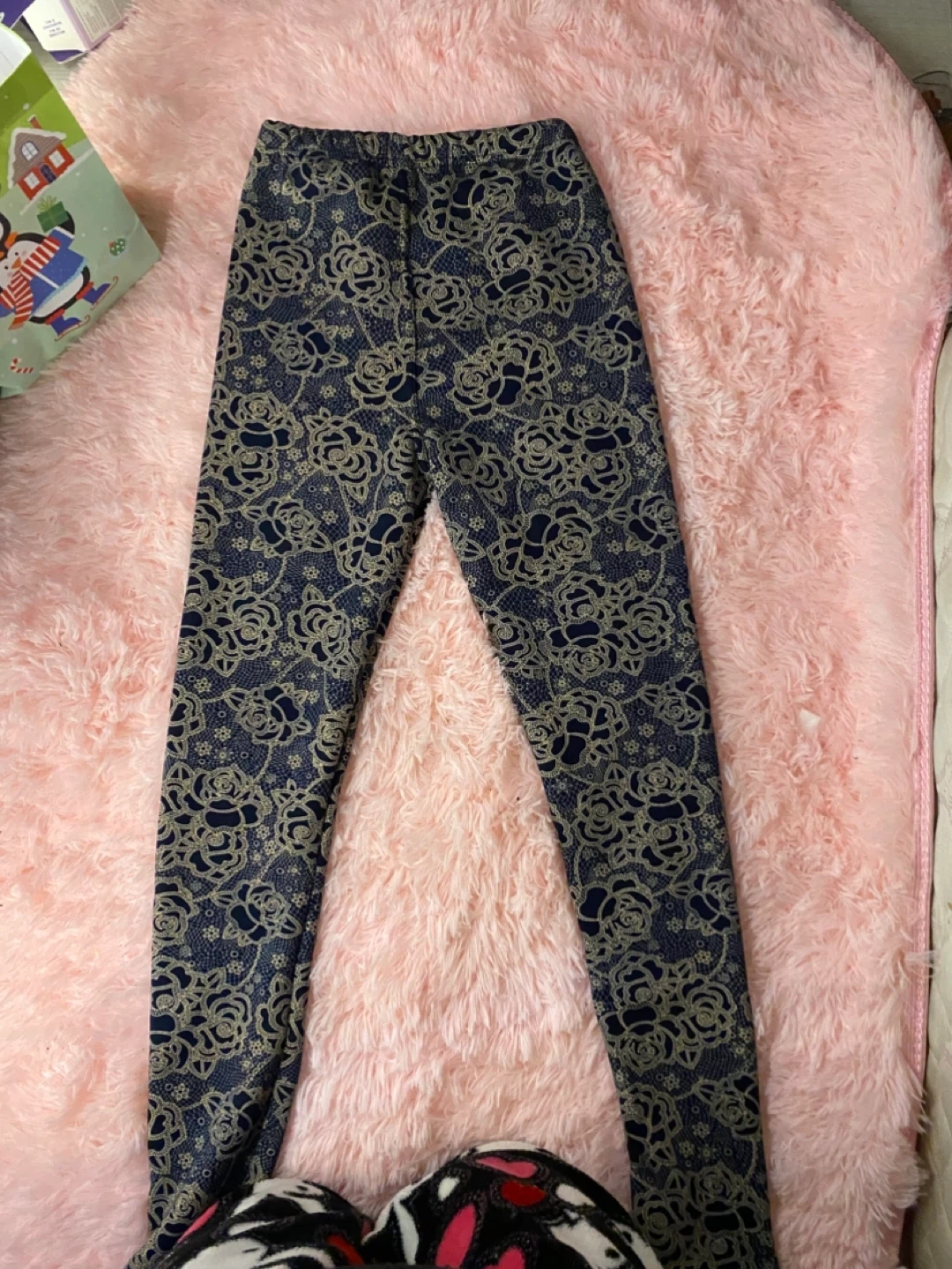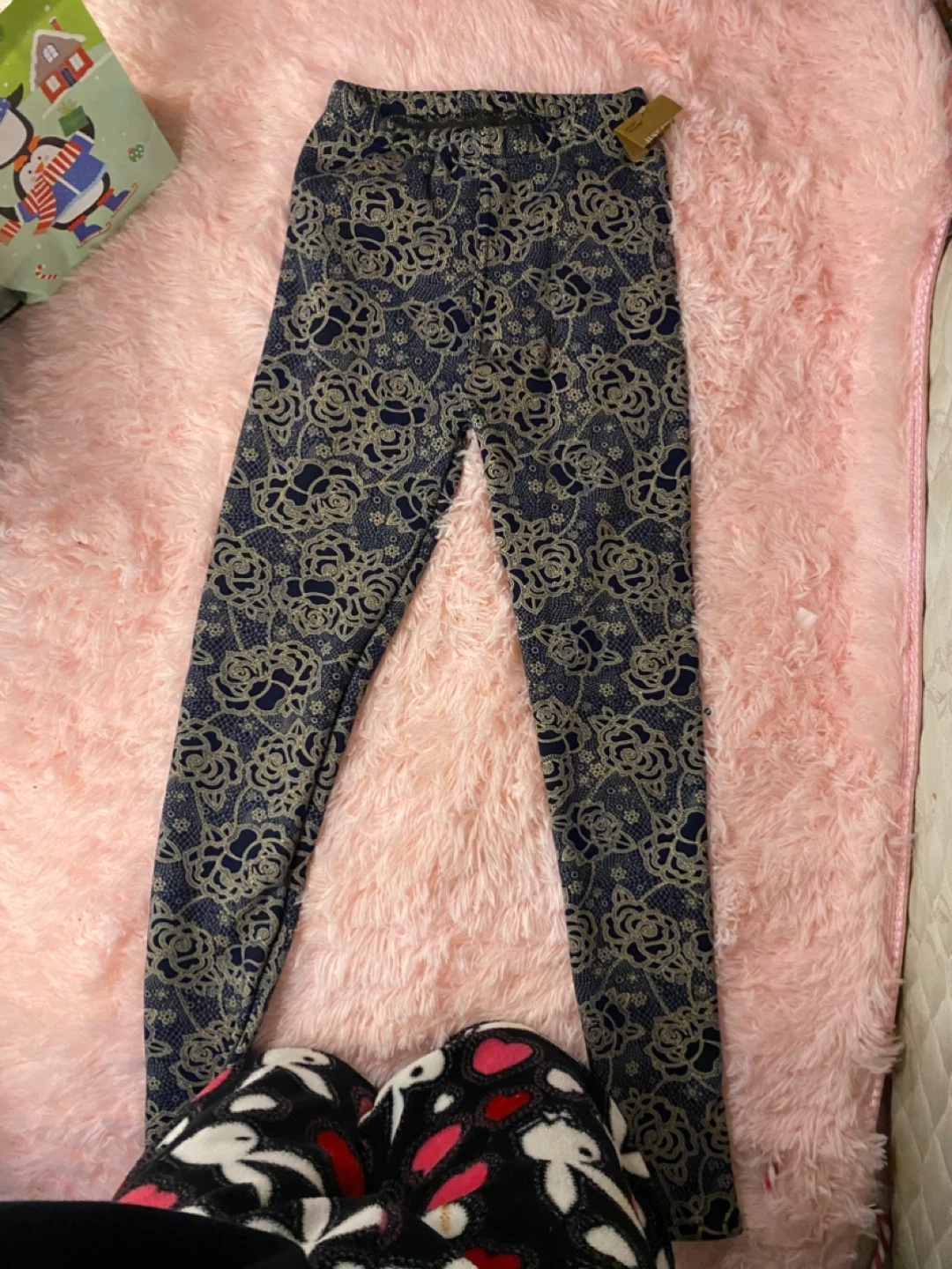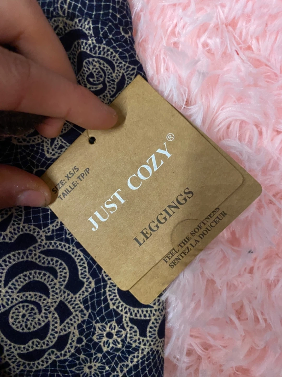 These are a pair of Just Cozy leggings in size XS/S. They feature a pretty floral pattern on a navy background. Perfect for lounging around the house or running errands of if u like snowboarding!