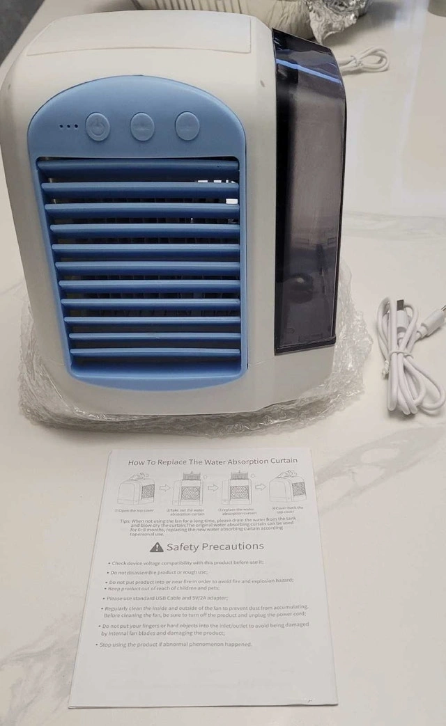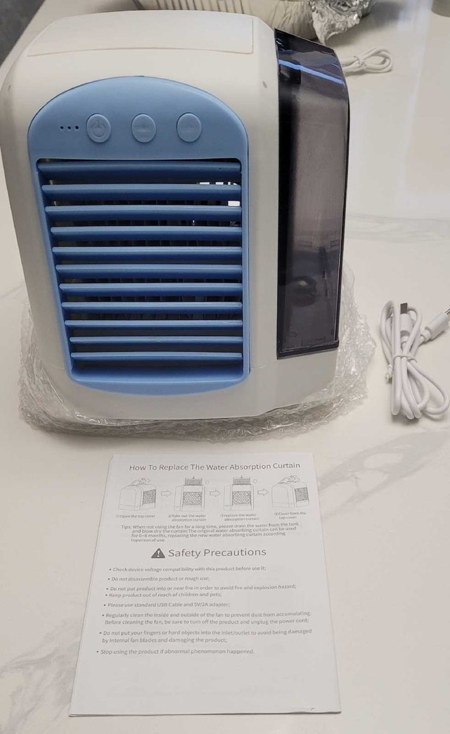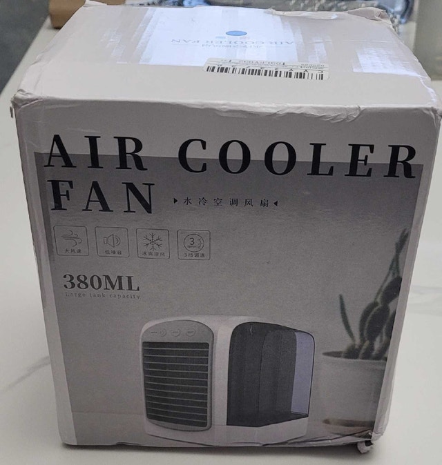 I'm selling a personal air cooler fan with a 380ml tank capacity, perfect for creating a cool and comfortable personal space during hot days. This compact cooler is in new condition, complete with its original box and instruction manual. Specifications: * Tank Capacity: 380ml * Condition: New * Includes: Original box, instruction manual Pickup in Brampton near Sheridan College Davis campus