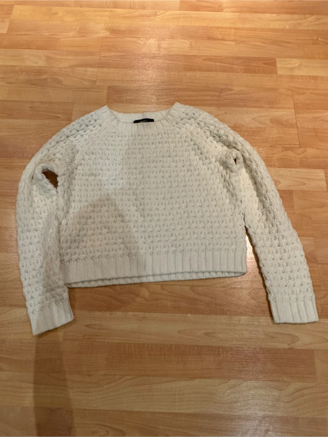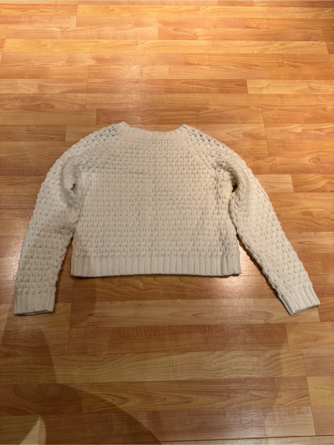 A cream-coloured knit sweater is up for grabs! It's in great condition and ready to keep you cozy. Perfect for layering during those chilly Canadian evenings!