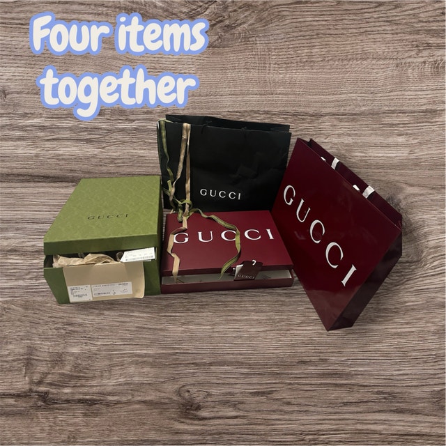 These Gucci boxes and bags are in great condition, perfect for collectors or those looking to add a touch of luxury to their storage. Included are a shoe box, two smaller accessory boxes, and two shopping bags. If the ad's still up, they're still up for grabs!