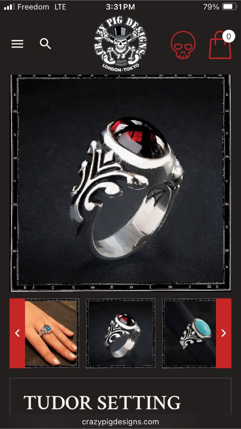 Based out of London, England. Featuring hand crafted unique designs you cannot find elsewhere. Selling a Crazy Pig Designs Tudor Setting ring. The ring is in good condition, though a few scratches, and ready to be worn!