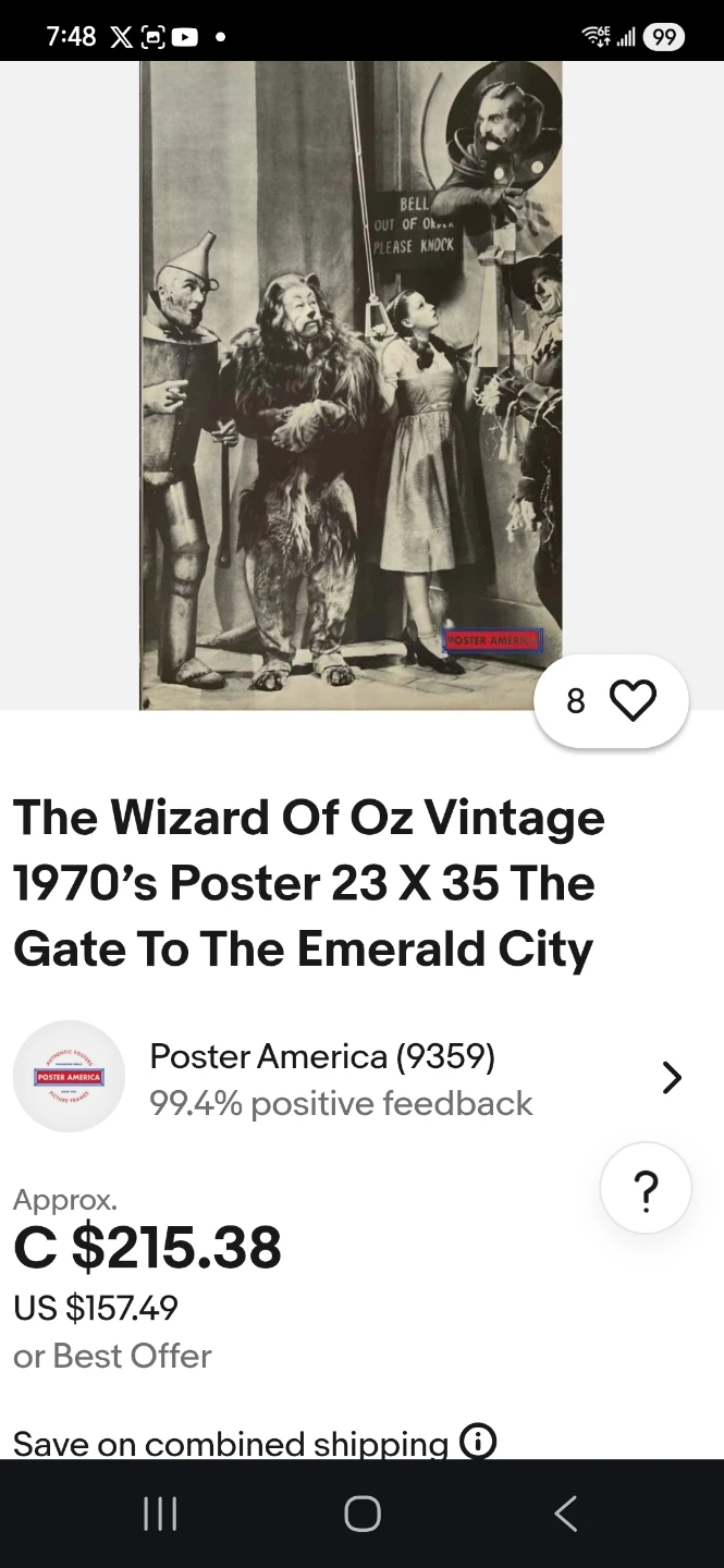 Selling a vintage poster on particle board of The Wizard of Oz from the 1970s. The poster measures 23 x 35 inches and features the characters at the gate to the Emerald City. A cool piece for any movie memorabilia collector! Worth $215 on ebay Great for Collector's