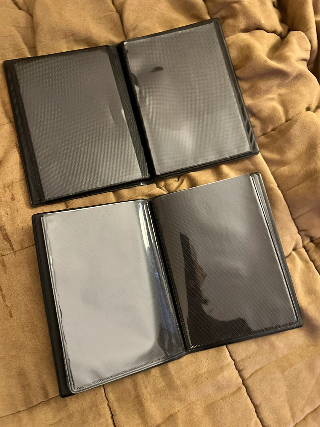 Selling a few photo albums. There's one in red, one in green, and one in black. They're great for storing your precious memories!