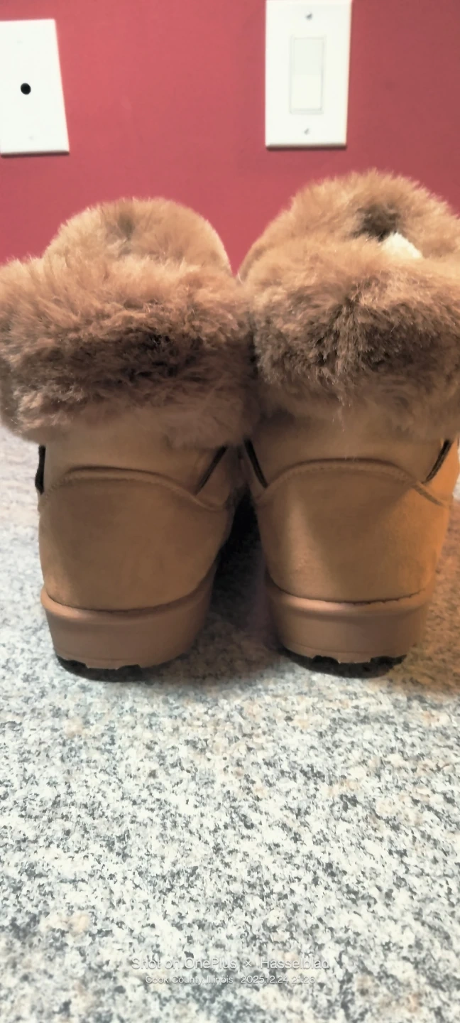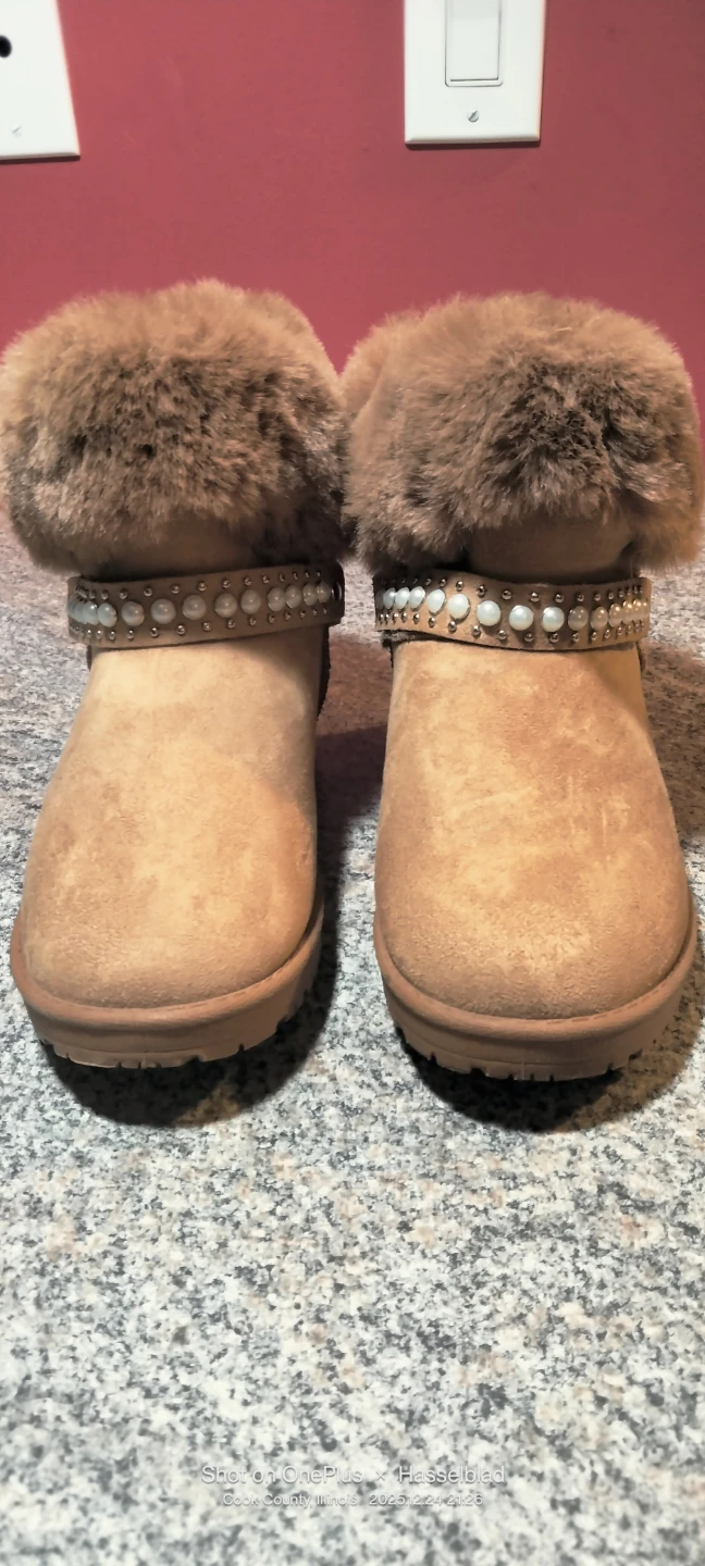 Cute pair of G.N.D. fur boots in a size 6! These boots are in great shape and ready for a new owner. They feature a stylish fur trim and a decorative strap with pearl-like accents. Perfect for keeping your feet warm and fashionable!