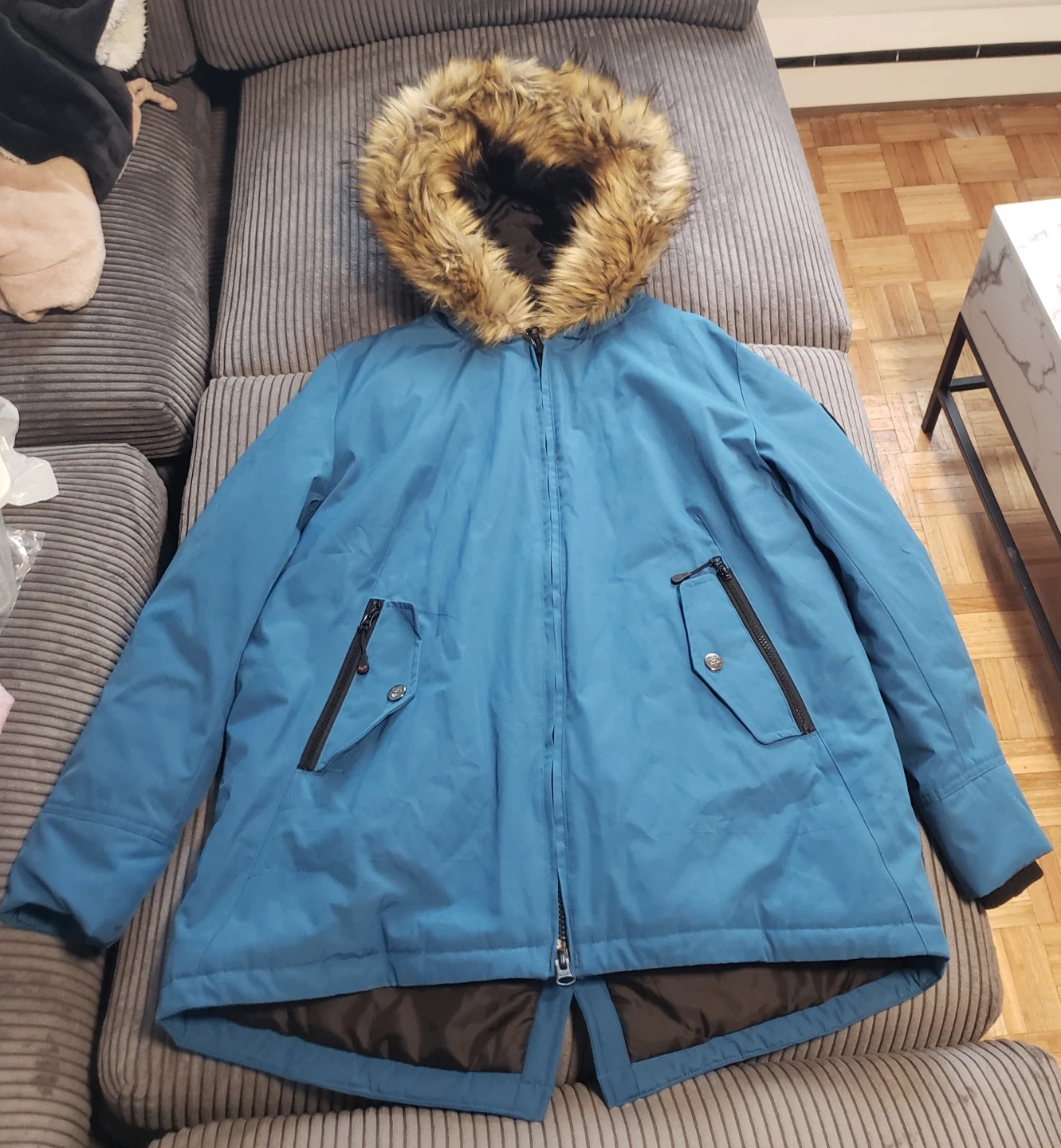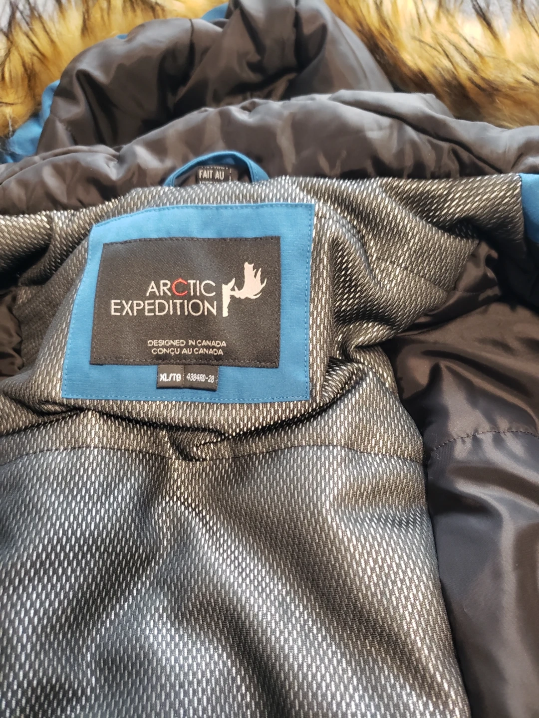 Selling a brand new XL Arctic Expedition Canada insulated winter coat (Canadian designed) in a beautiful blue colour! It's in great condition and perfect for the cold Canadian winters. Artic Expedition Canada have high reviews and are shown in both Canadian and American Home Shopping channels videos. They range in pricing from 150 to over 400$ before taxes. The jacket features a faux fur hood and multiple pockets (5 pockets in total) with zippers (3 pockets with zippers). There are 4 fleeced pockets at the front of the coat and one hidden pocket inside the coat. Stretch storm cuffs to lock the heat in and block the wind from entering. Elastic drawcords at waist for a customized fit. Measurements: 32.3 inches height excluding hood, Bust 42 inches, Natural Waist 45 inches, Hips 54.5 inches. It is unisex. Cash only