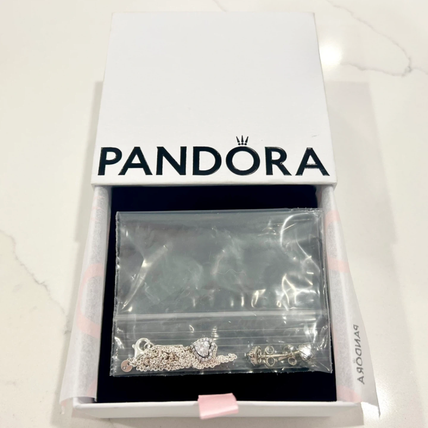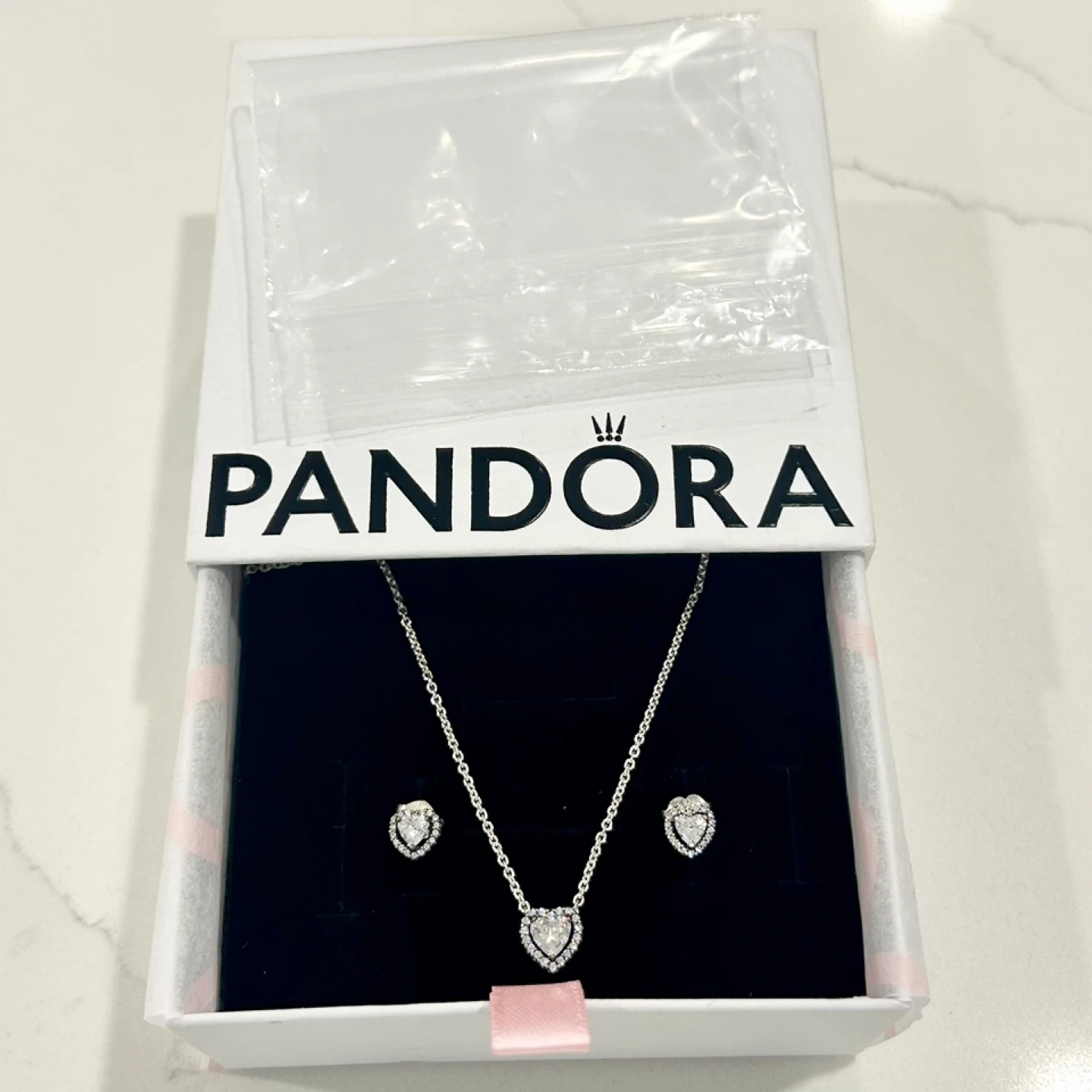 PANDORA ELEVATED HEART NECKLACE & EARRING SET MATCHING JEWELLERY