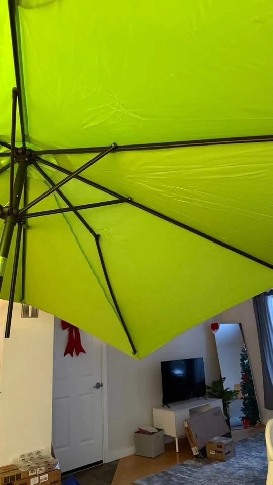 Giving away a 9-foot patio umbrella in a beautiful apple green color for free.