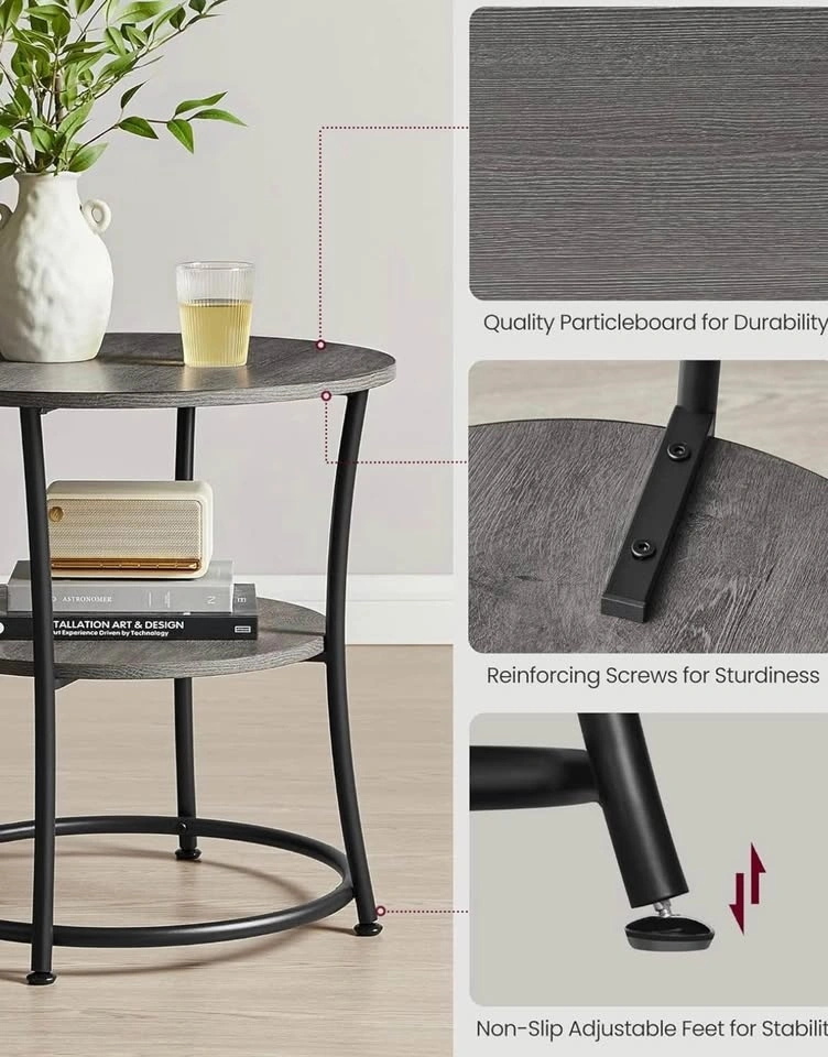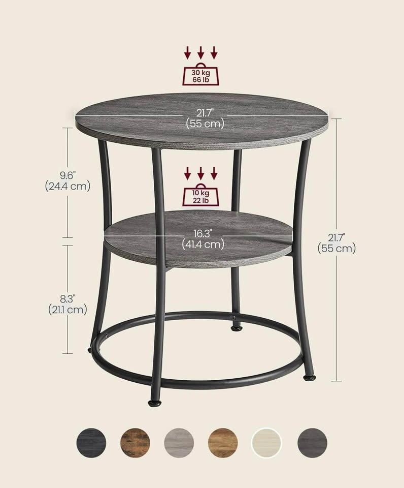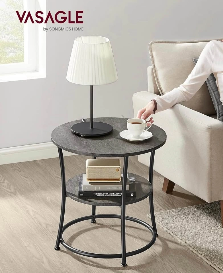 π VASAGLE 2-Tier Round Side Table | Modern End Table
