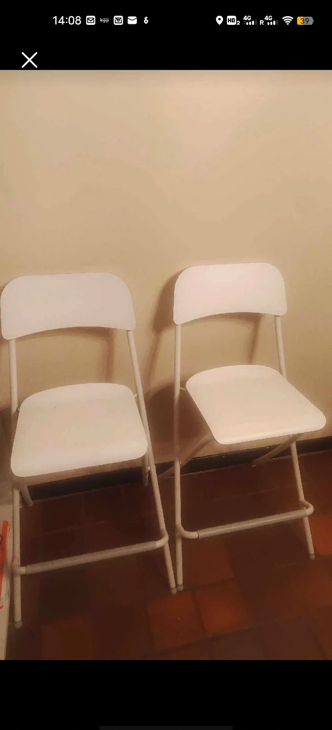 Selling a set of two white folding chairs. Great for extra seating when you have guests over! They're in good condition and ready to use.