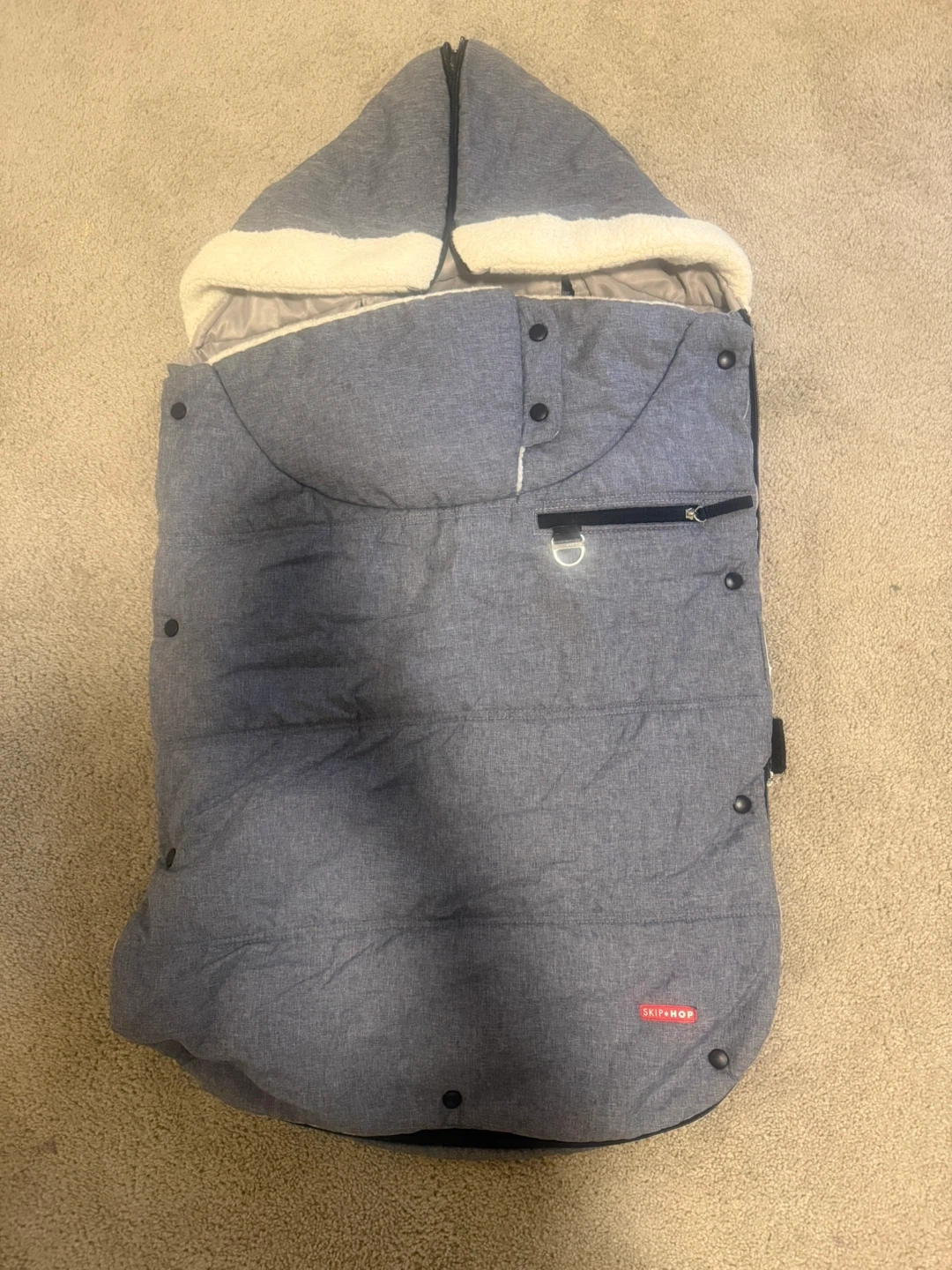 Keep your little one cozy with this Skip Hop Stroll & Go Three-Season Footmuff! It's perfect for keeping them warm during stroller rides. It's in great condition and ready for a new home!