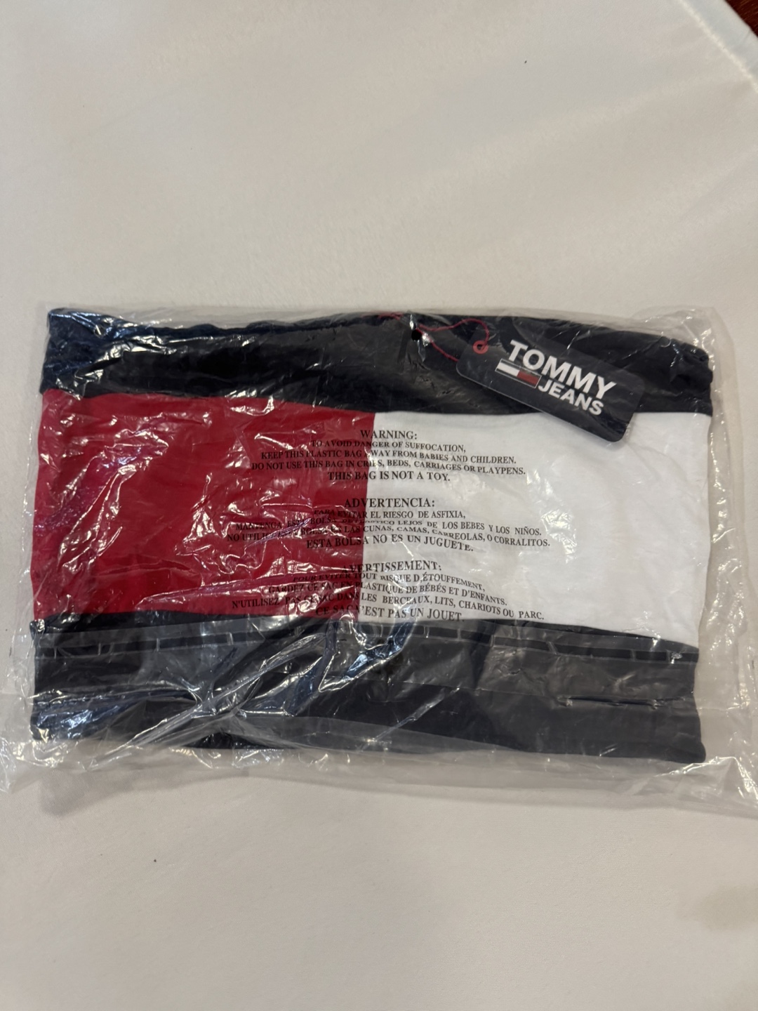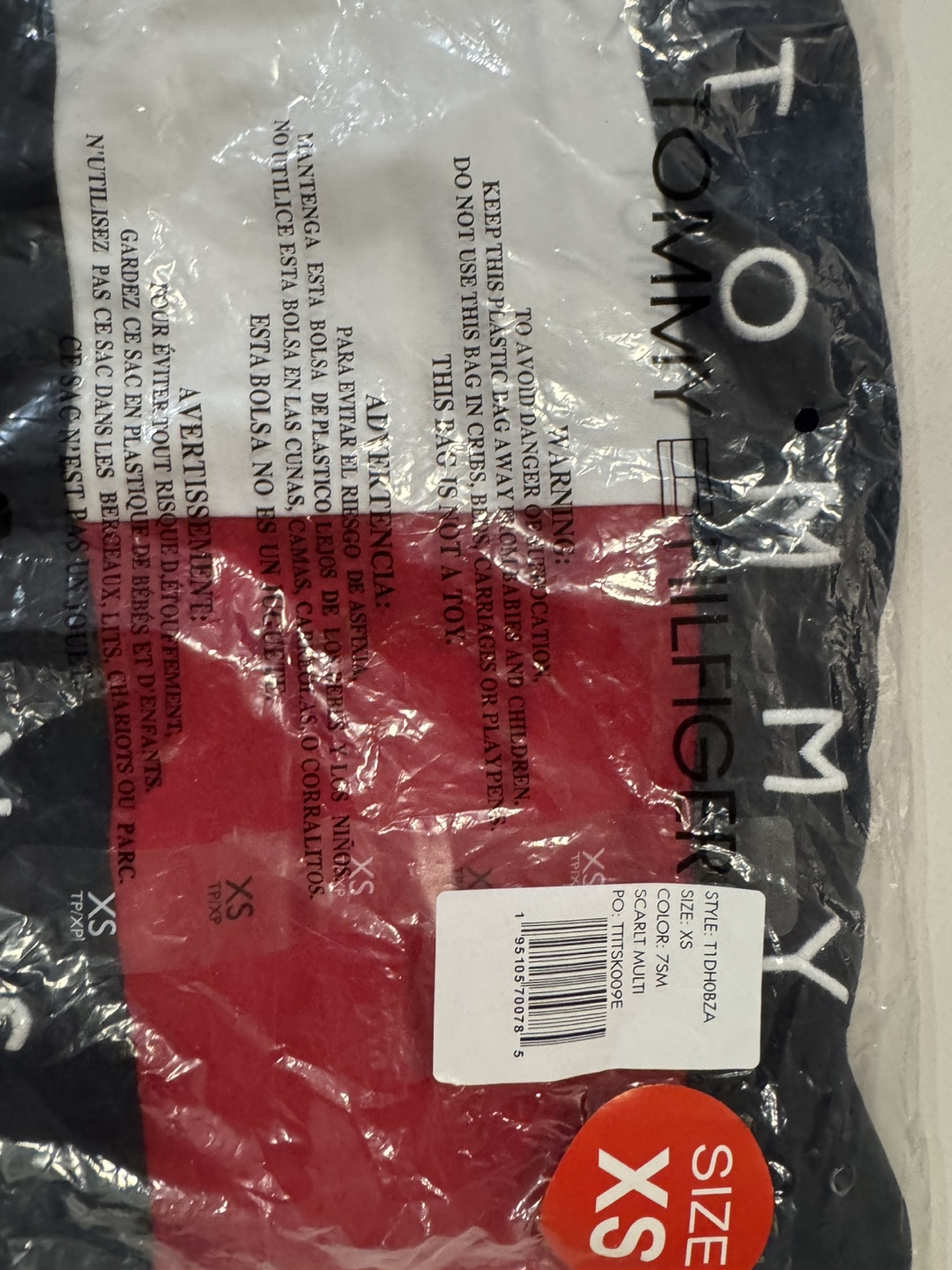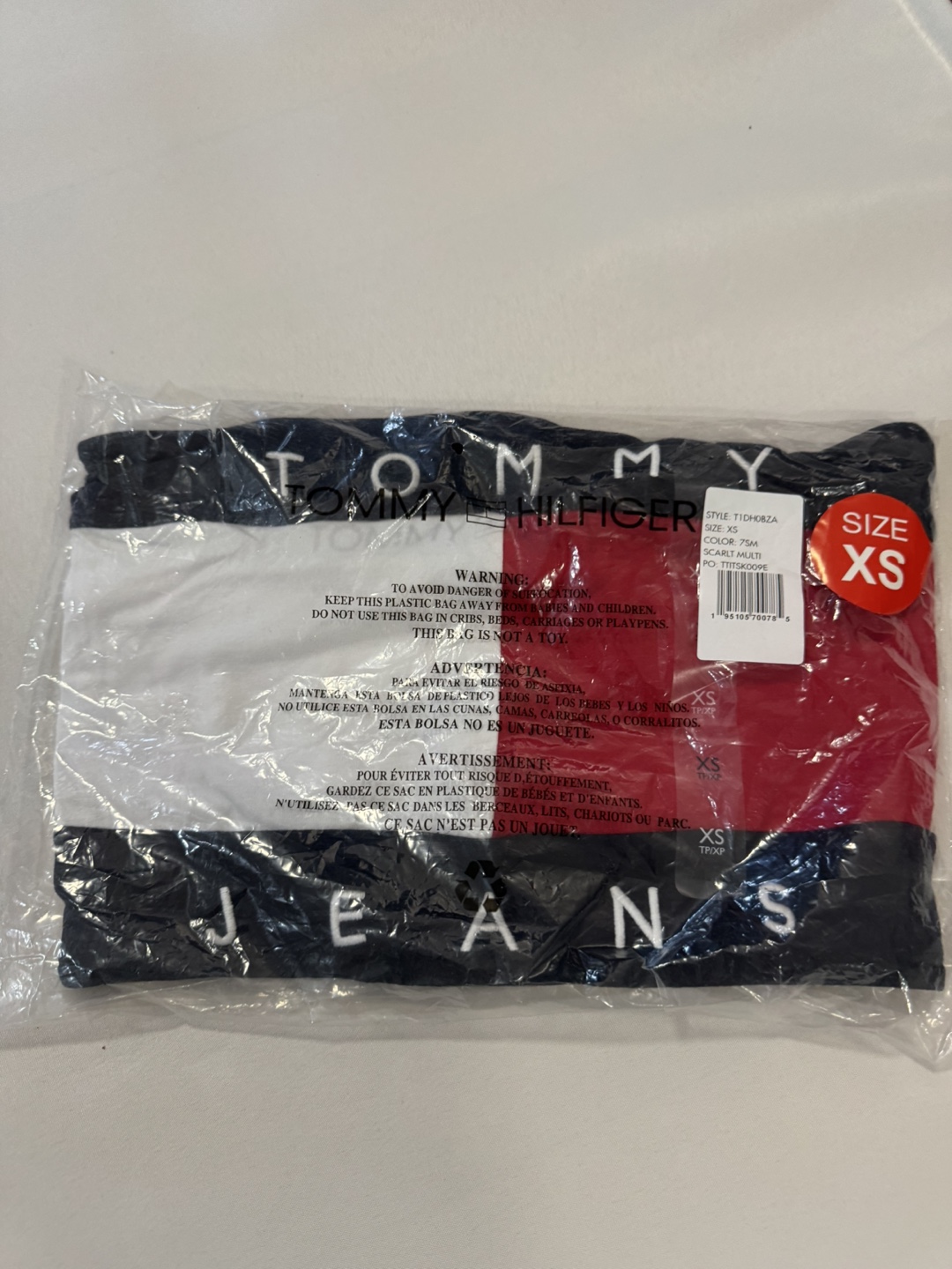 Here's a brand new Tommy Hilfiger Jeans T-shirt! It's a size XS and the color is scarlett multi