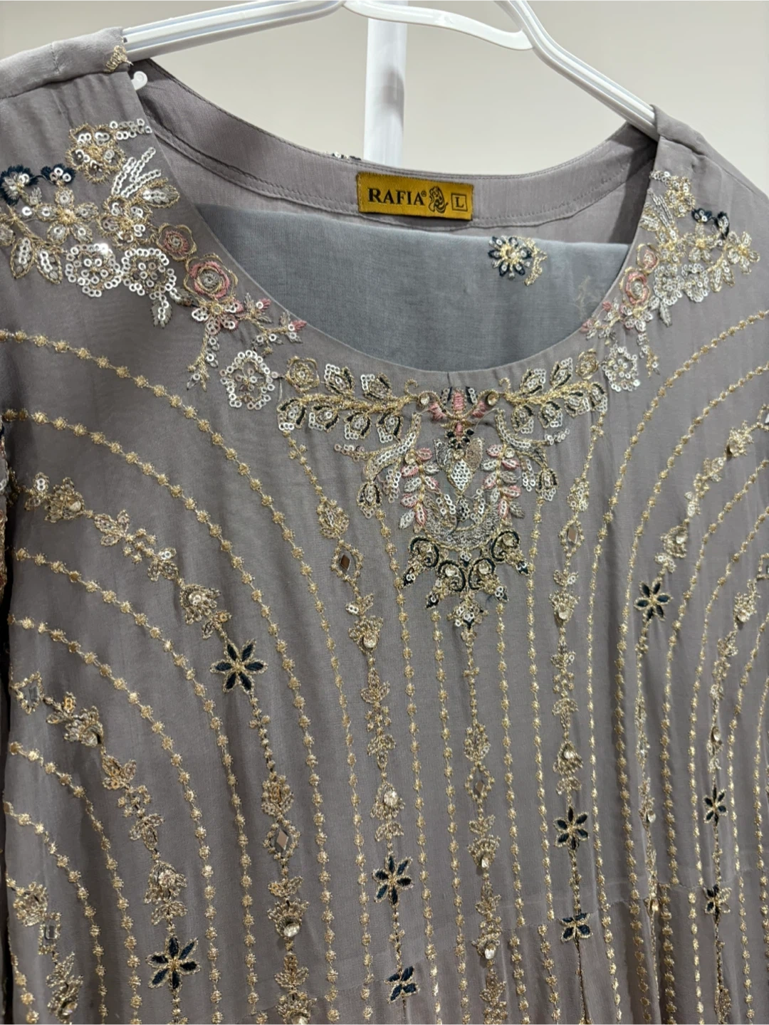Beautiful Rafia dress, size L, with intricate embroidery and sequin detailing. ONLY WORN ONCE