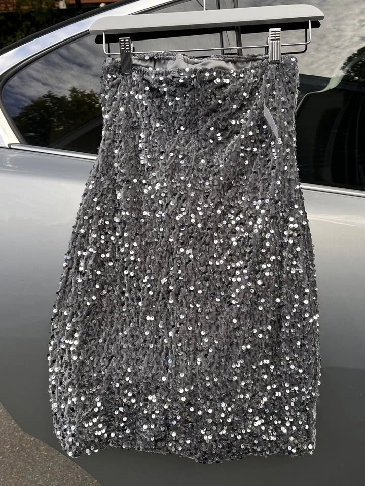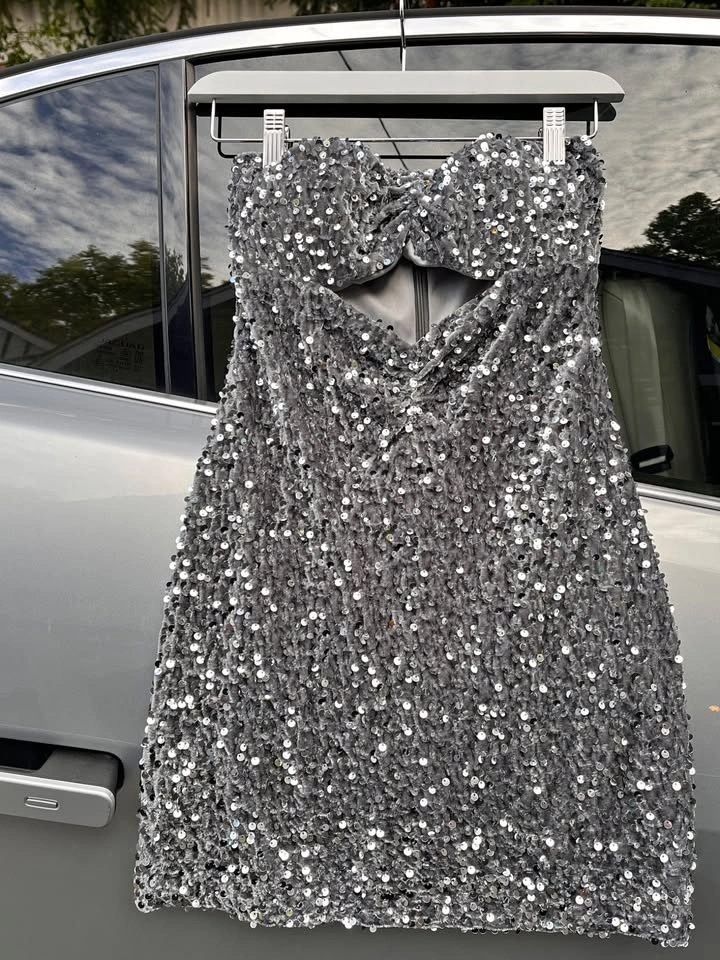 Leftover from a closed boutique Silver sequin strapless dress — sparkly, chic, and perfect for parties or shoots. Brand new!