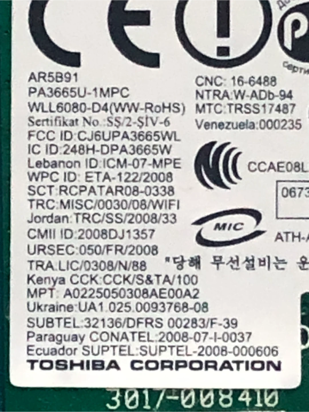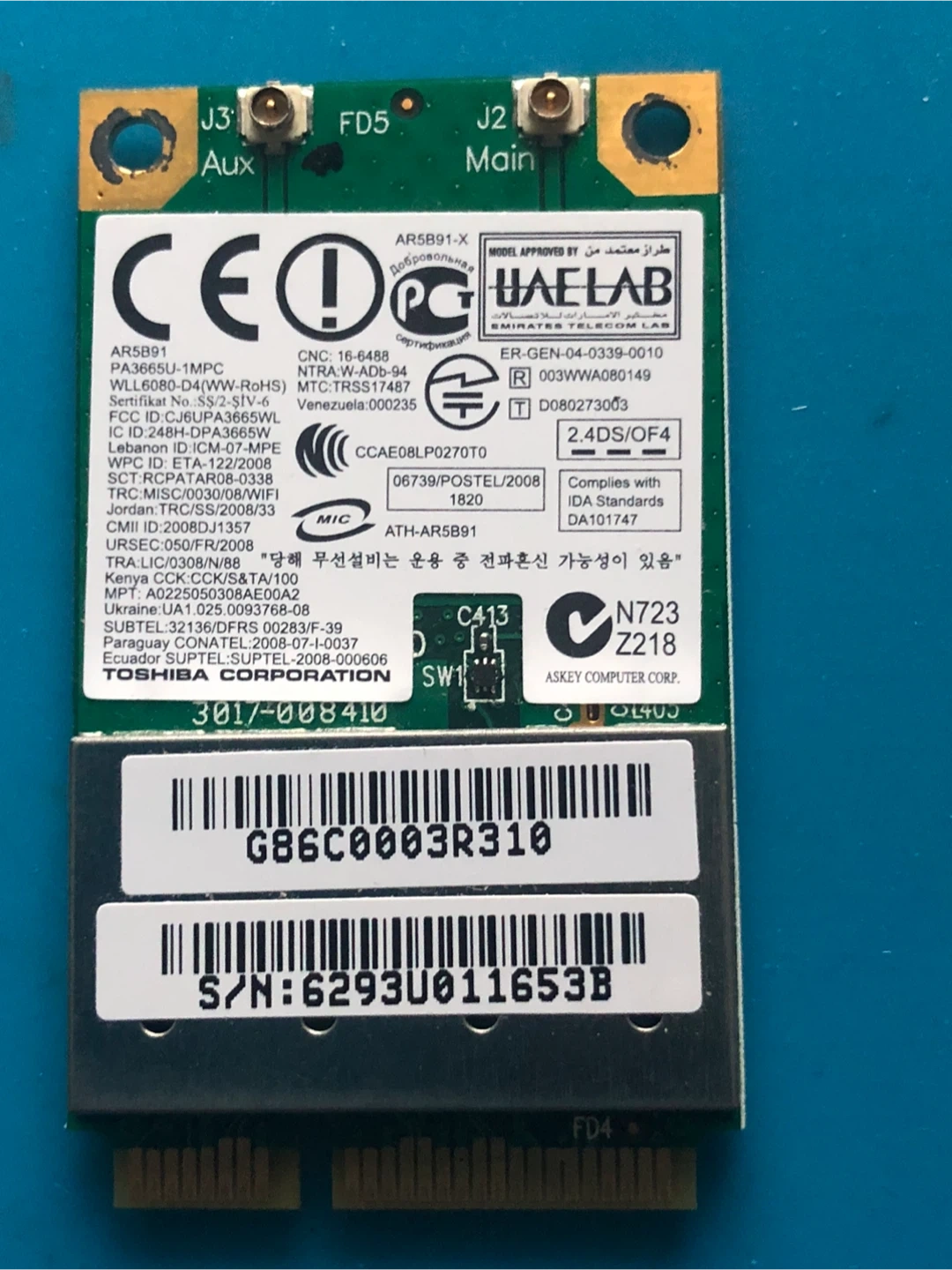 Selling a used Toshiba AR5B91 WiFi card. It's in good condition and ready to be installed in your device. Perfect for upgrading or replacing a faulty card