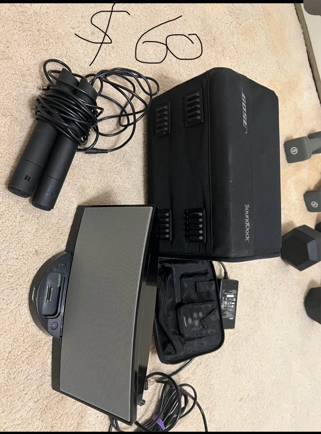 Selling a Bose Soundock speaker system. Includes the speaker, carrying case, and two microphones. Great for small events or karaoke!