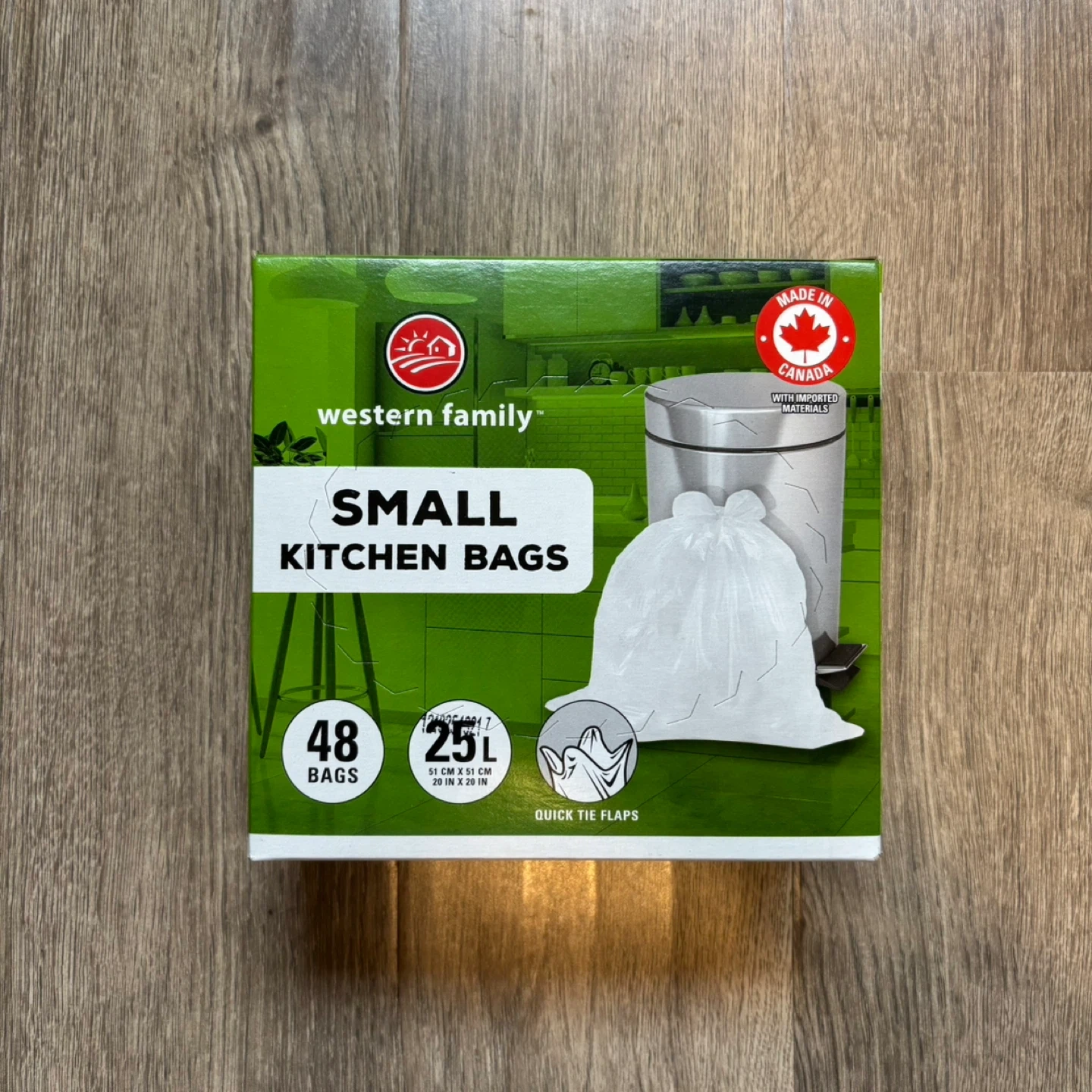 I’m selling brand new, unopened small kitchen garbage bags (48 bags, 25L).