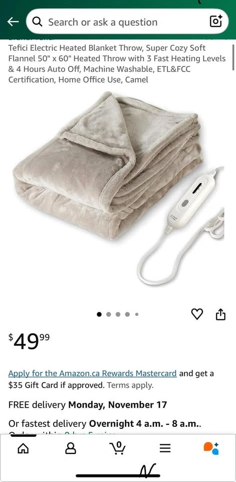 Stay warm and comfortable with Tefici Heating throw blanket.