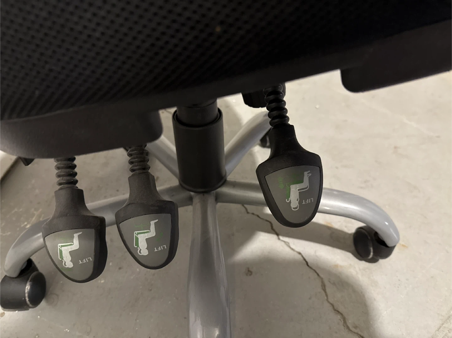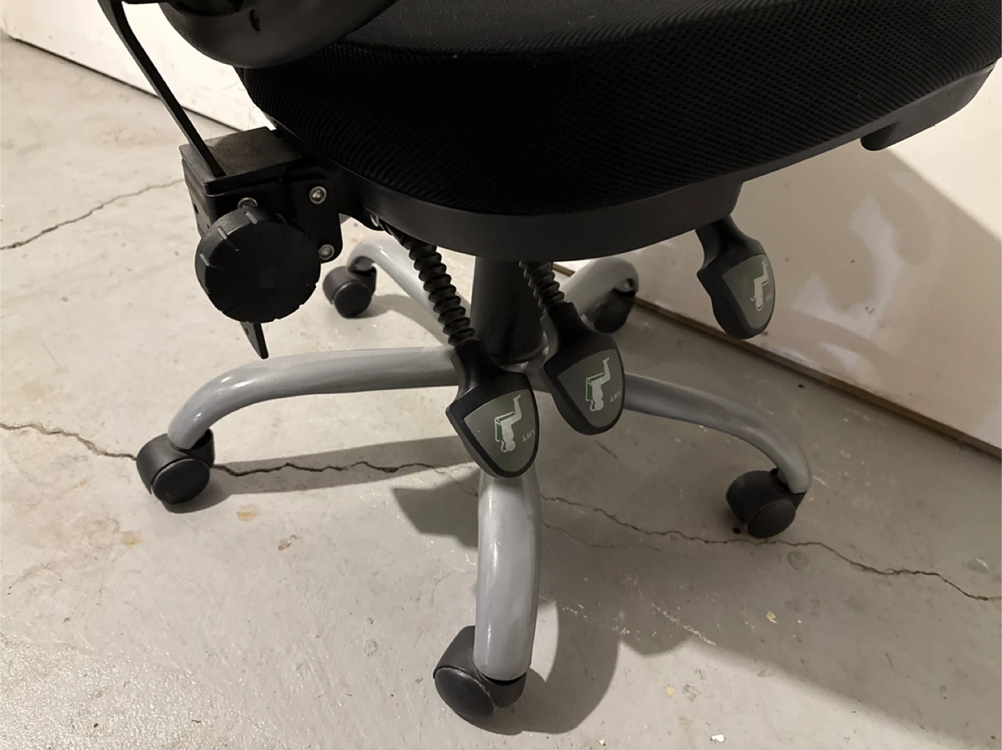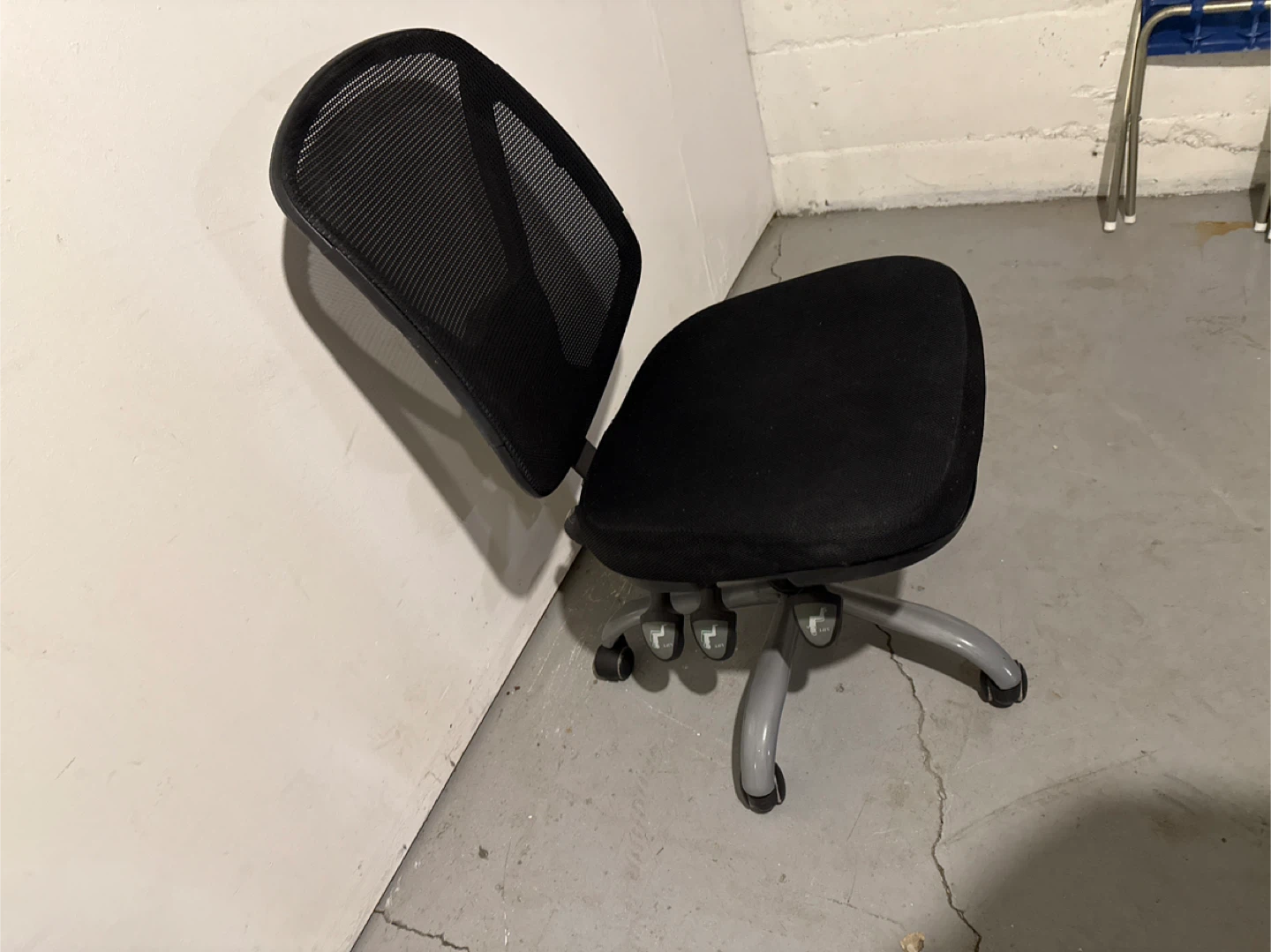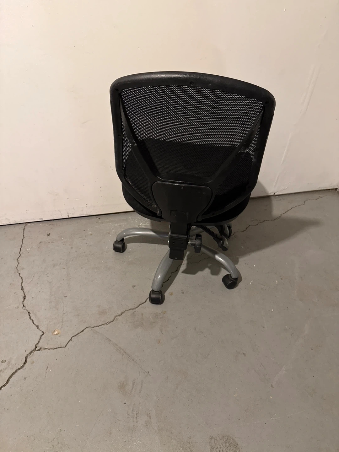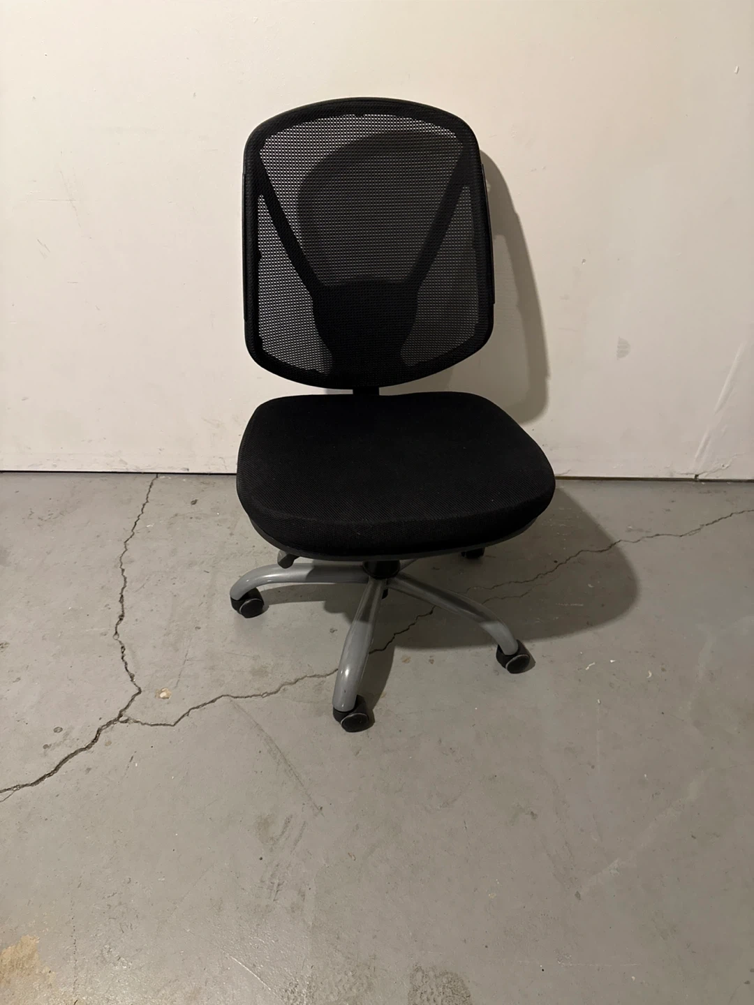 Selling a black mesh office chair. It's in good condition with adjustable back ready for a new workspace. The chair features adjustable height and a comfortable mesh back for support
